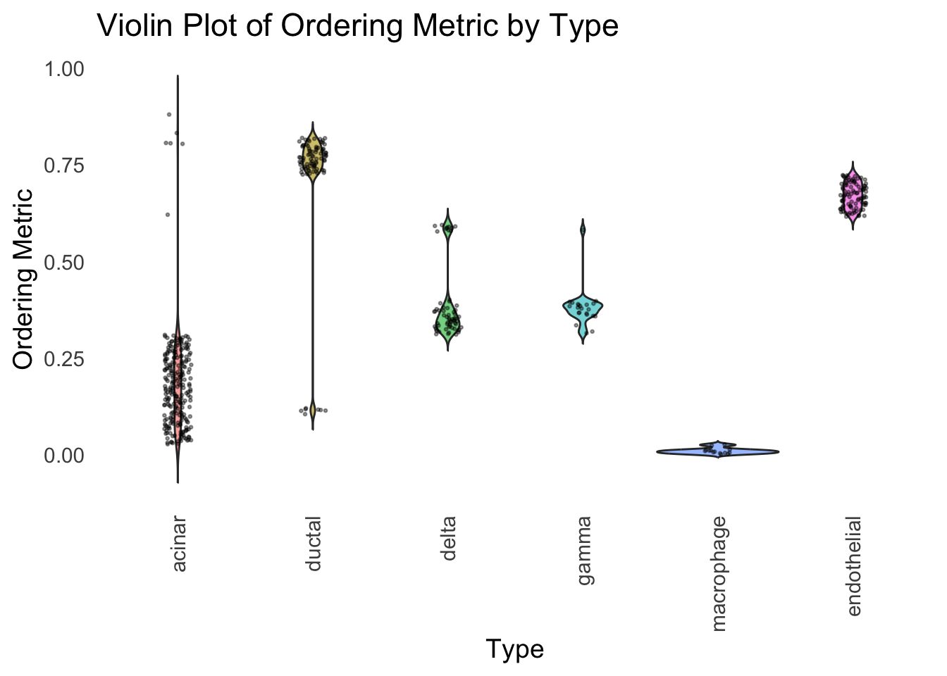 We could also take a look at the distribution of the latent ordering metric for each cell type.