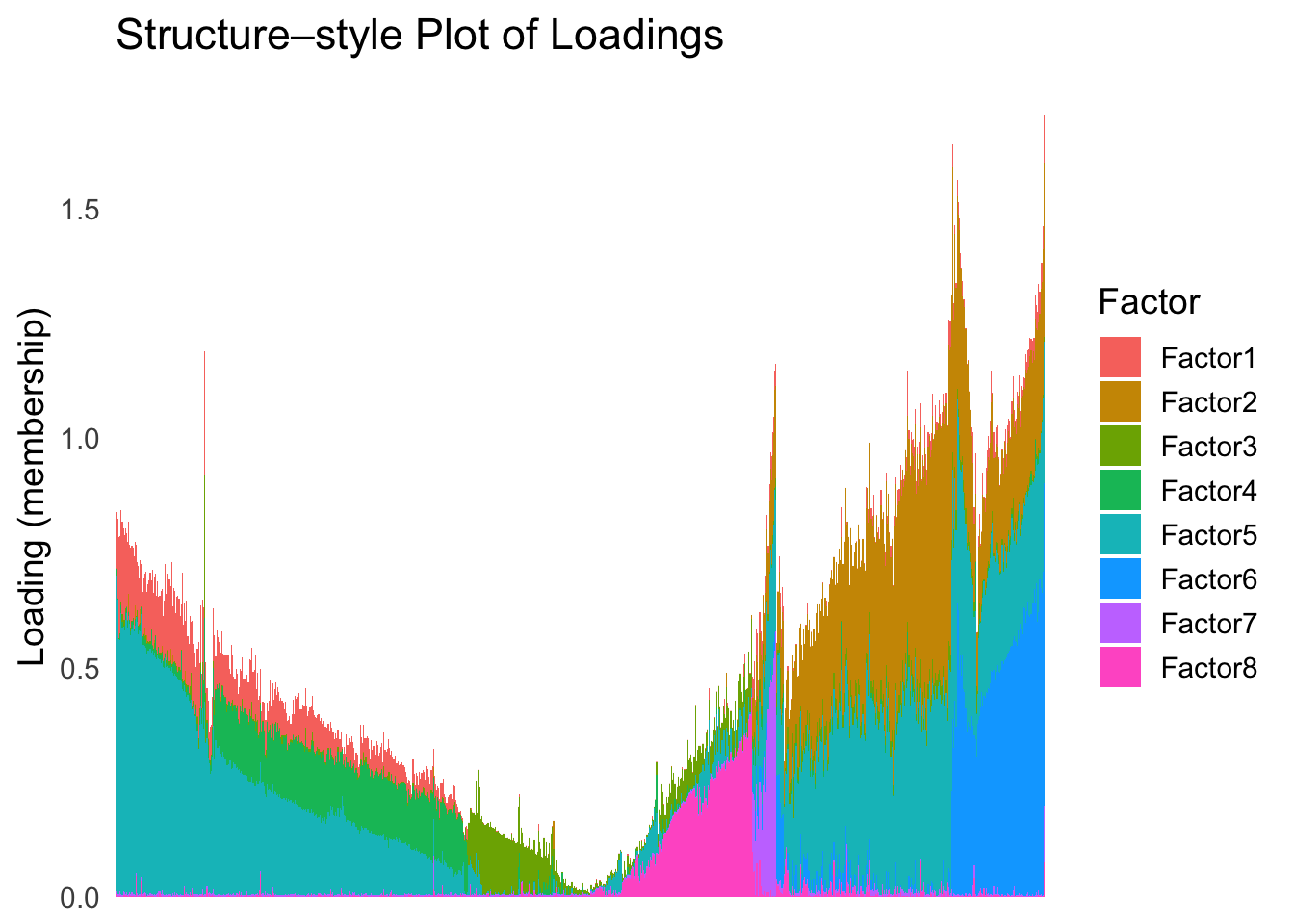 plot_structure(Loadings, order = rownames(Loadings)[hc_order])