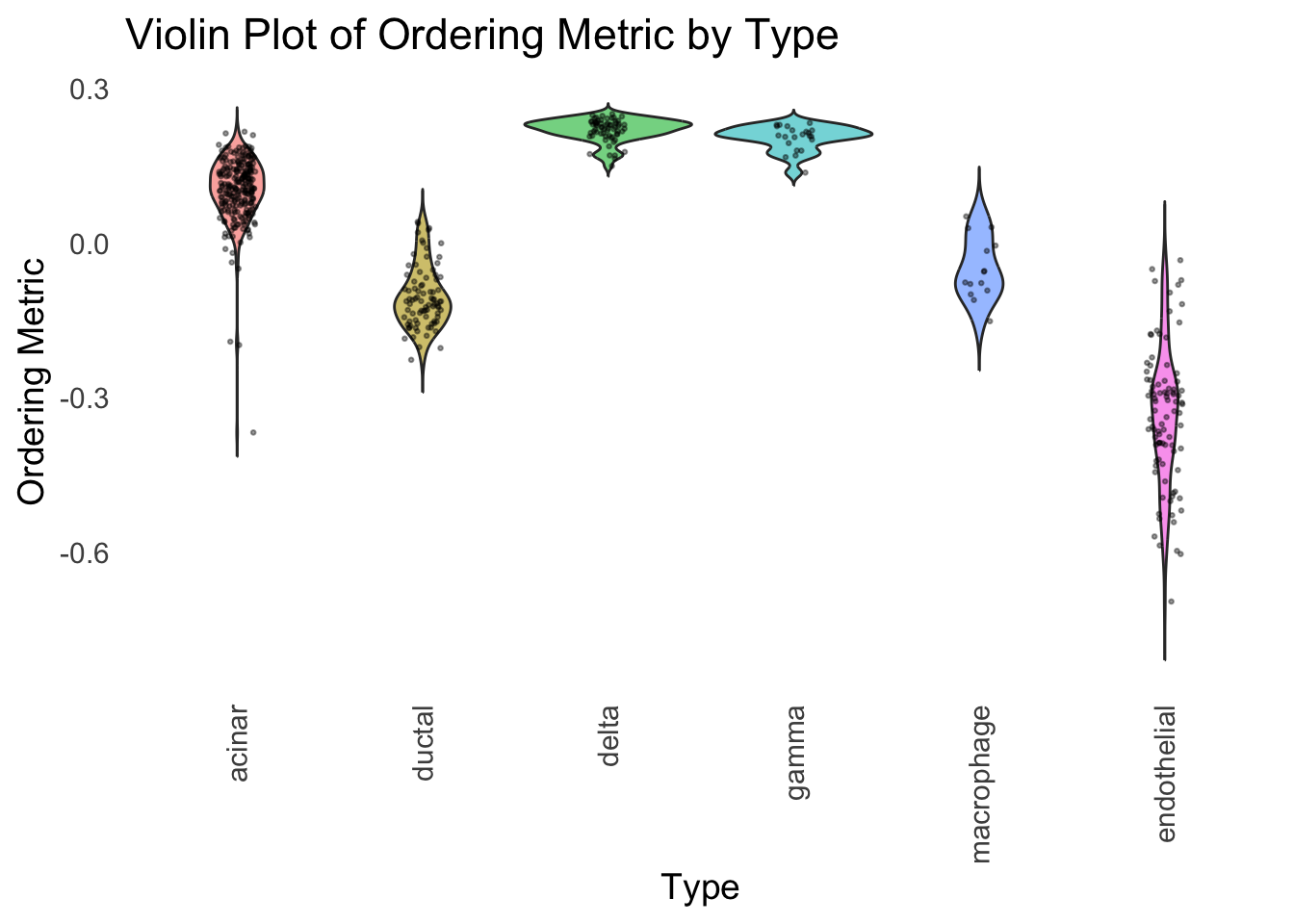 We could also take a look at the distribution of the latent ordering metric for each cell type.