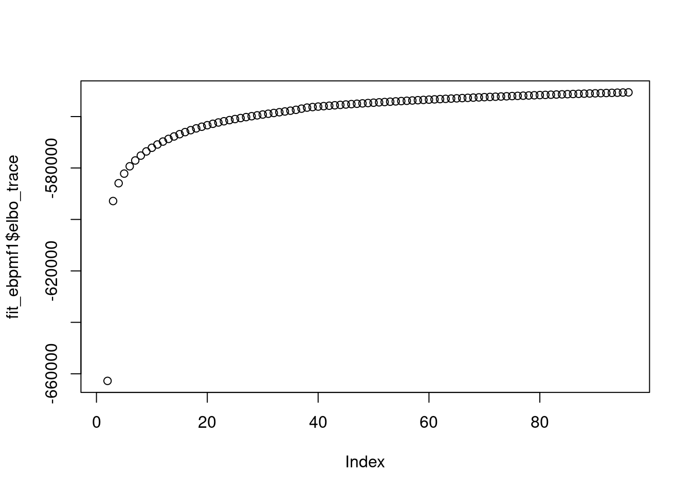 Running 100 EM updates, without extrapolation (fastTopics 0.6-142).