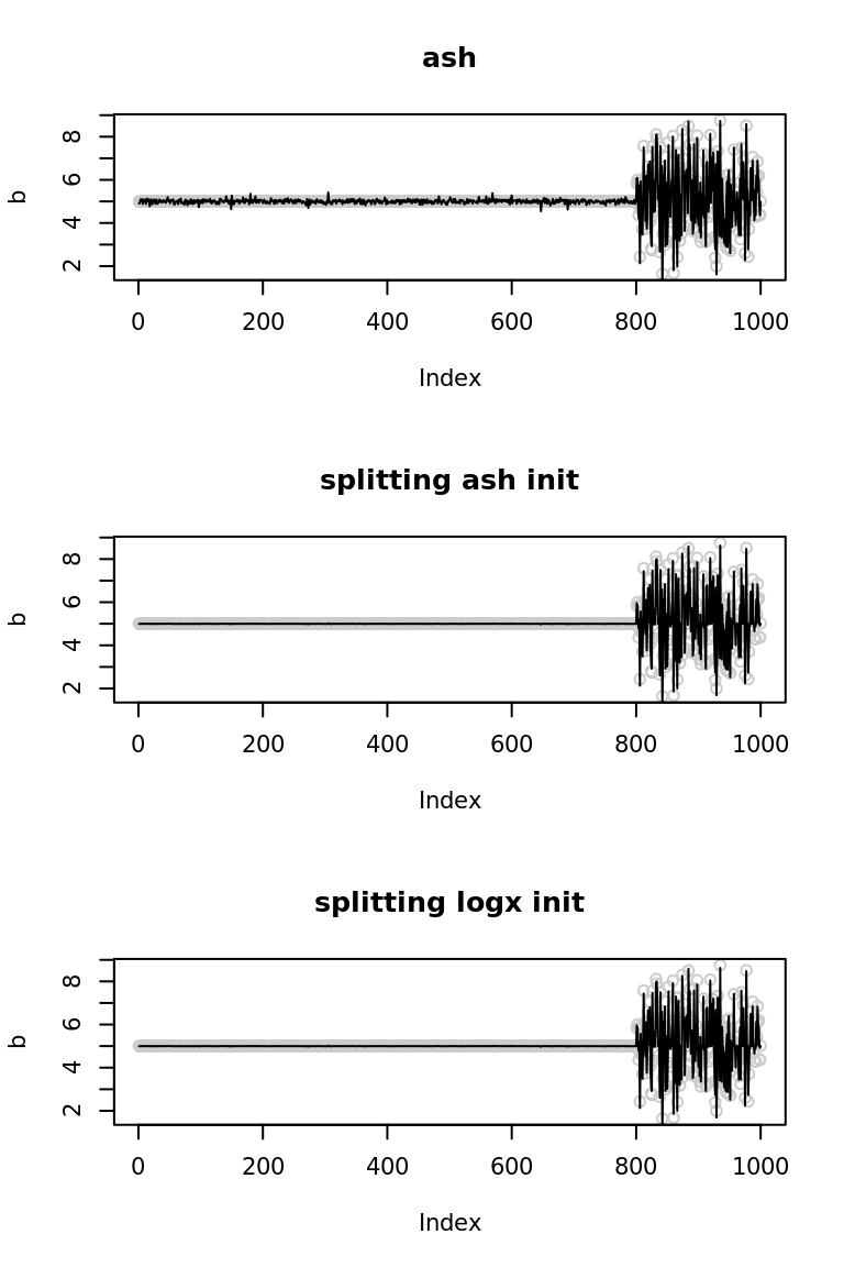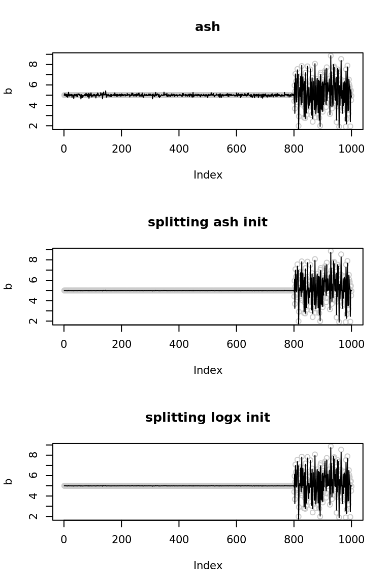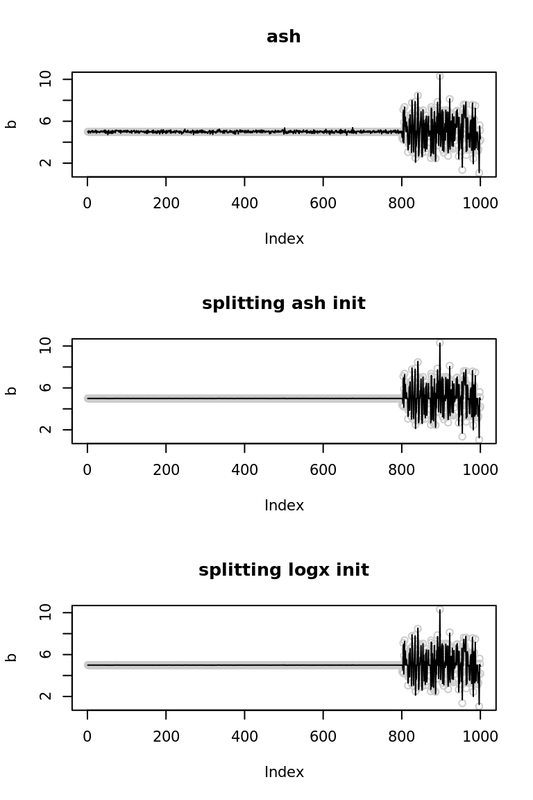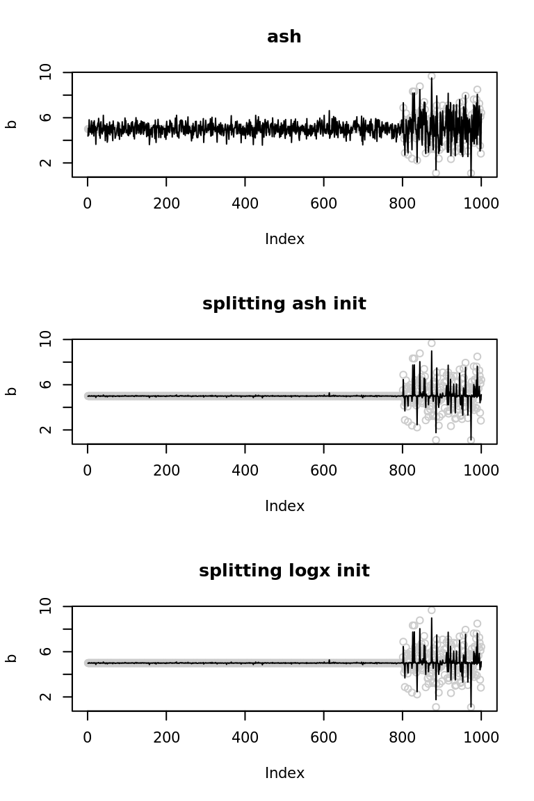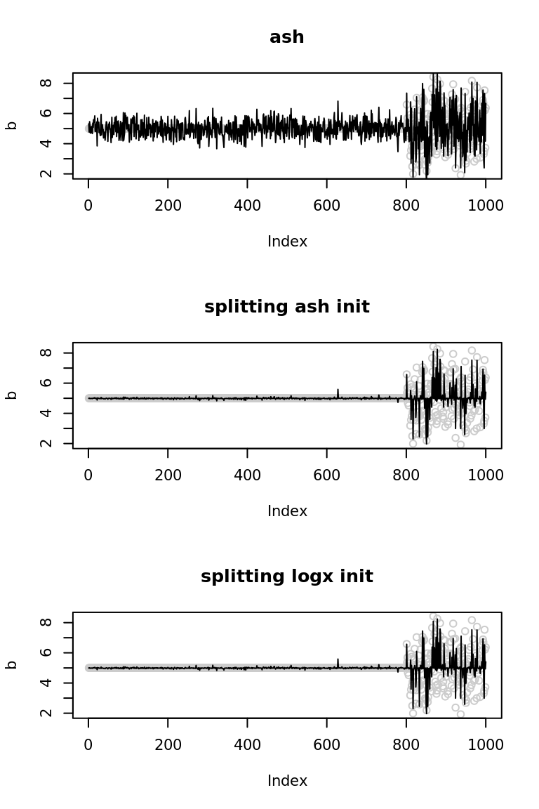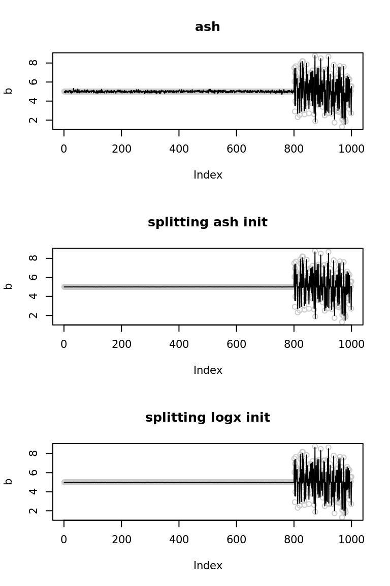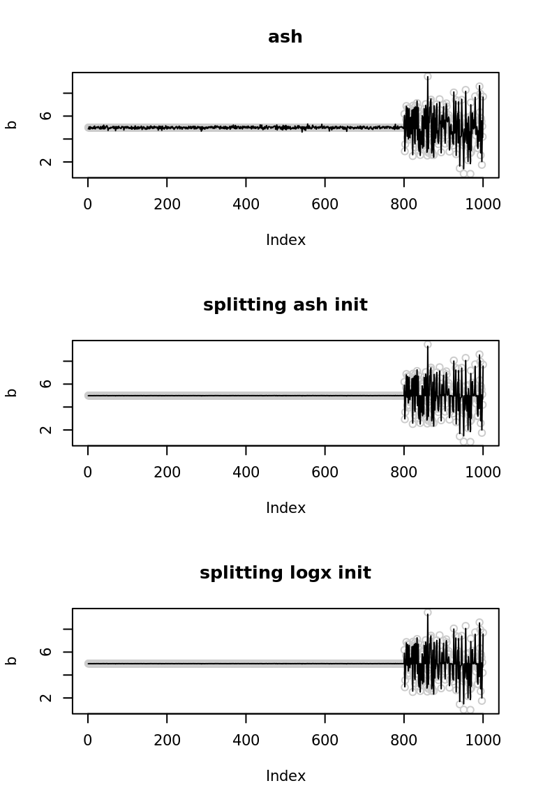 plot(b,col='grey80',ylab='b',main='splitting logx init')
