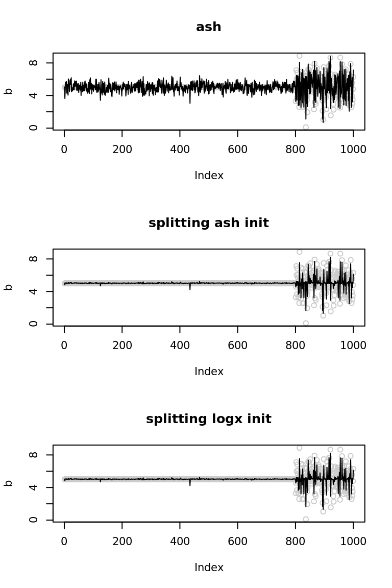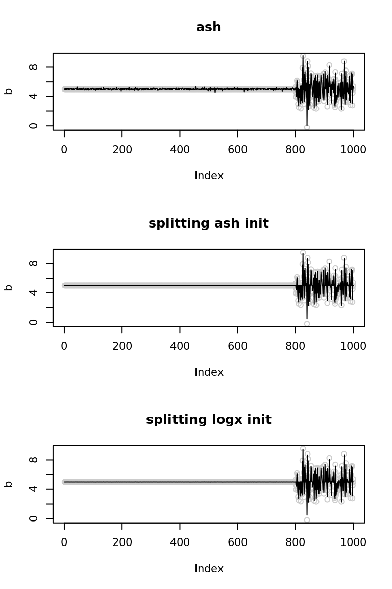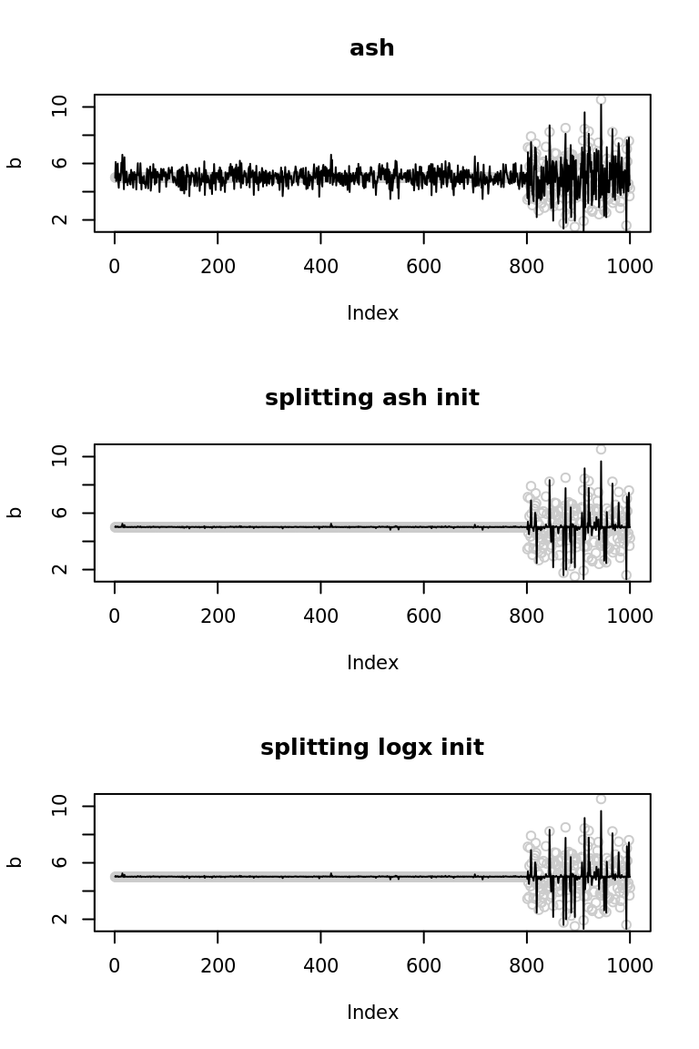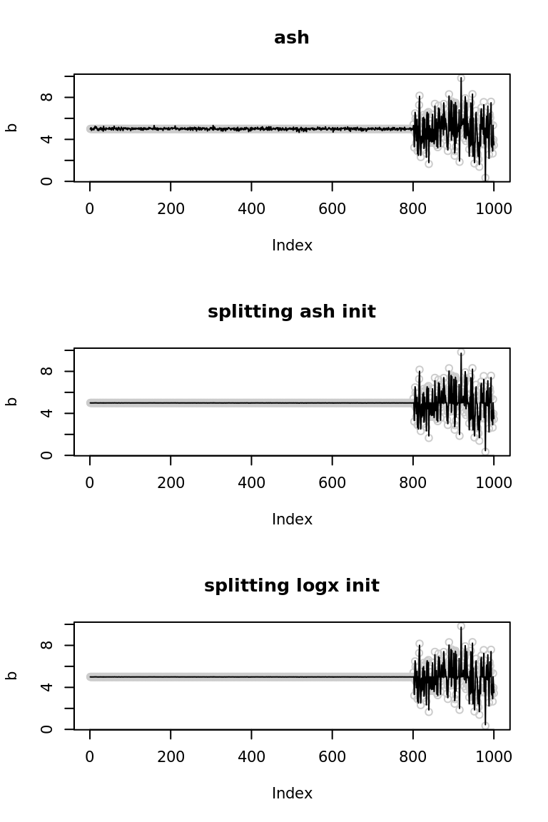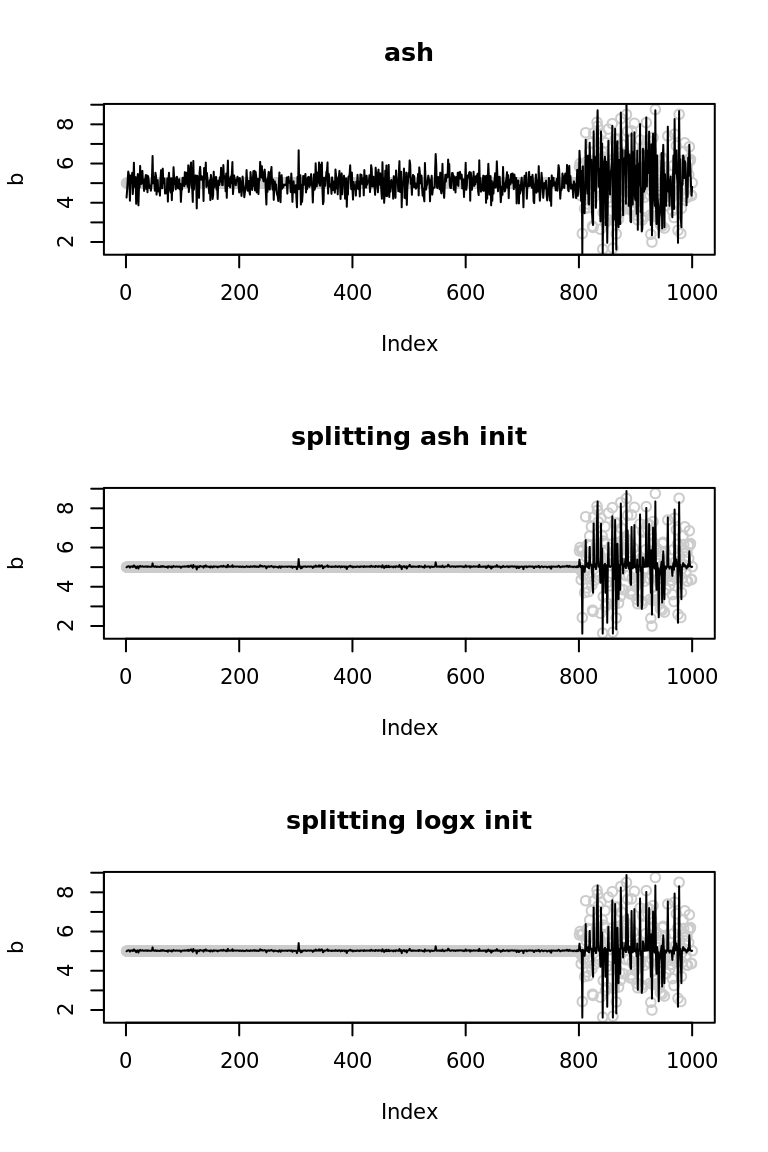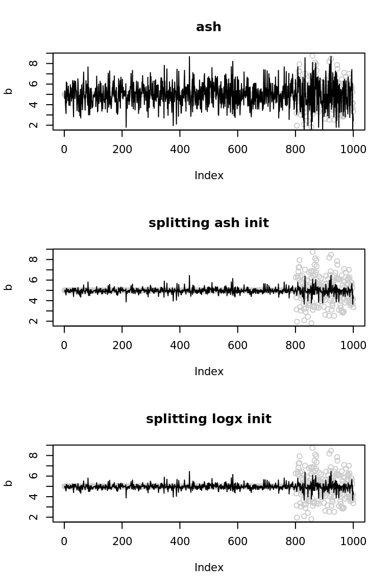 plot(b,col='grey80',ylab='b',main='splitting logx init')