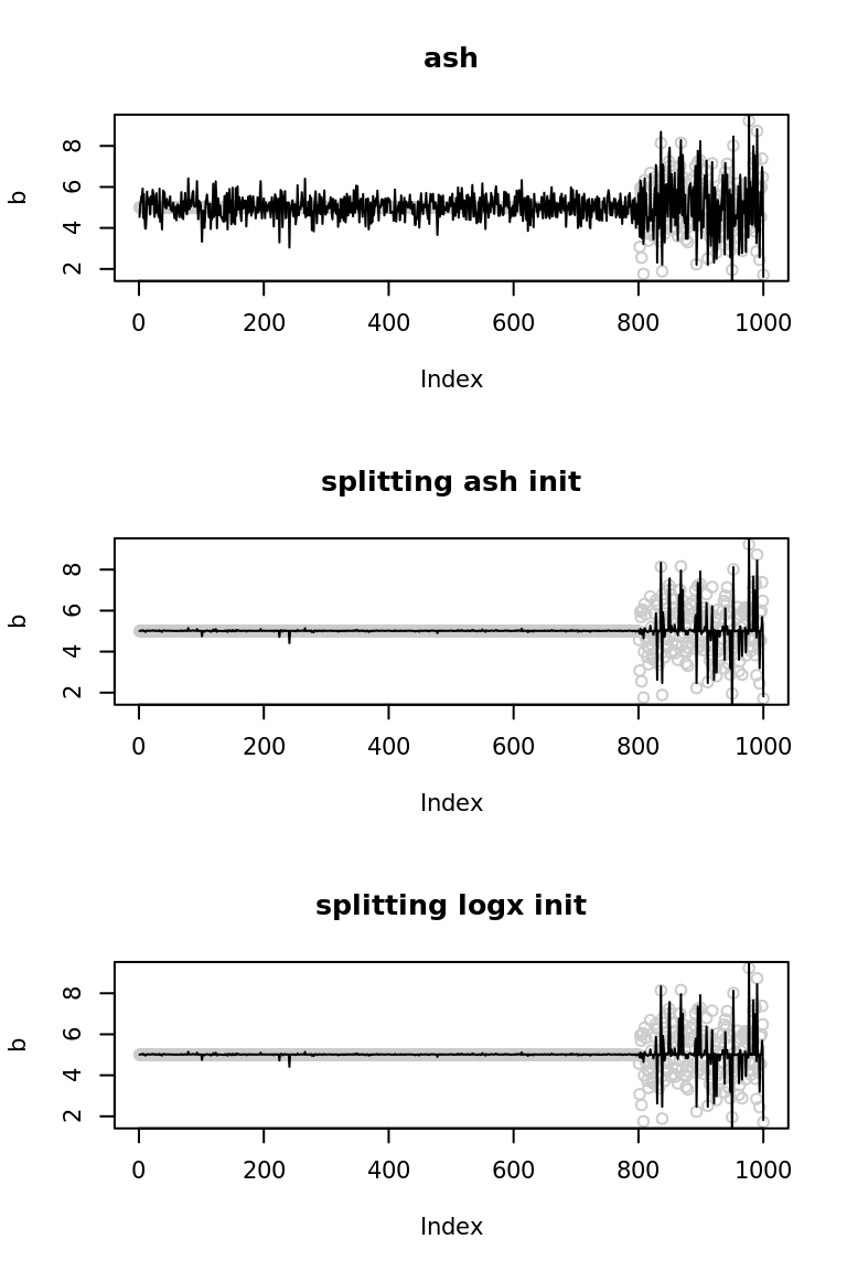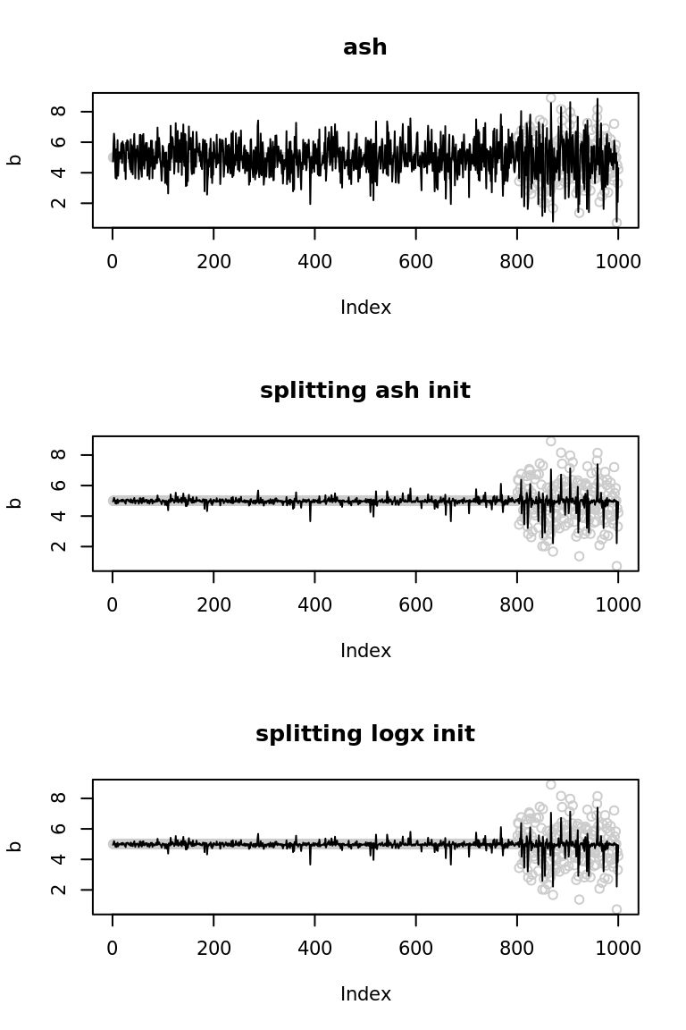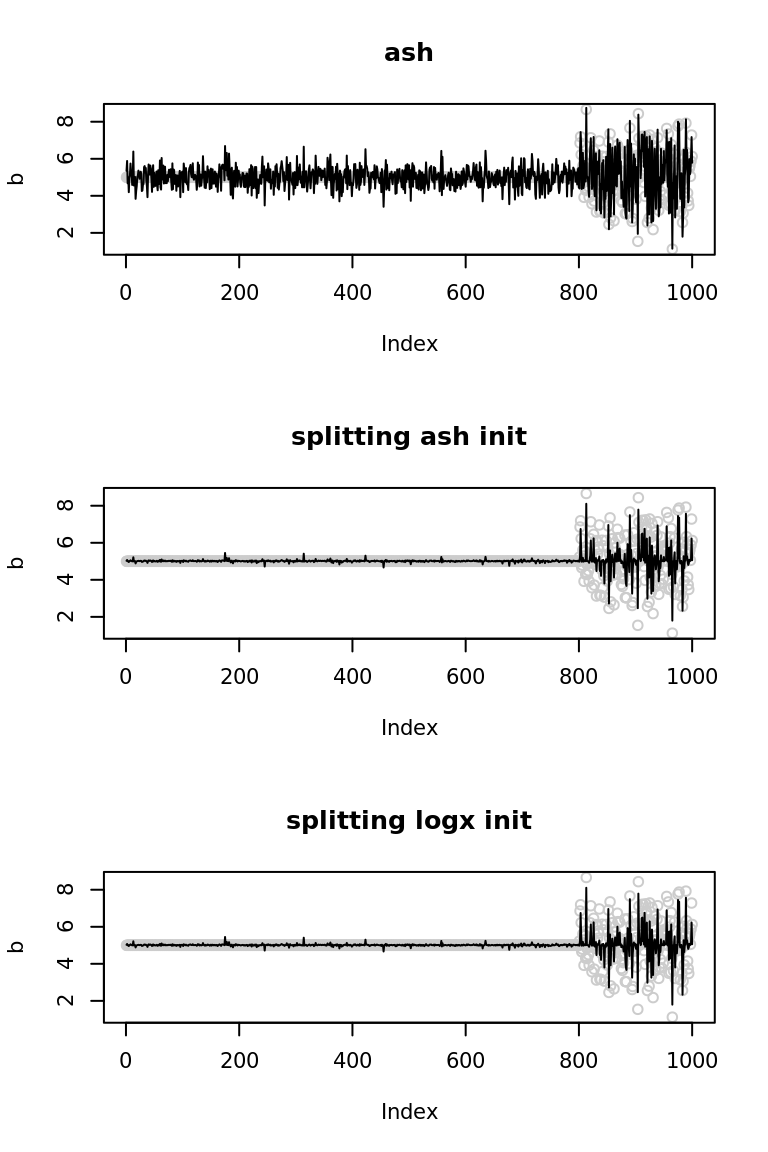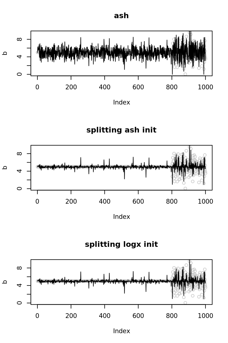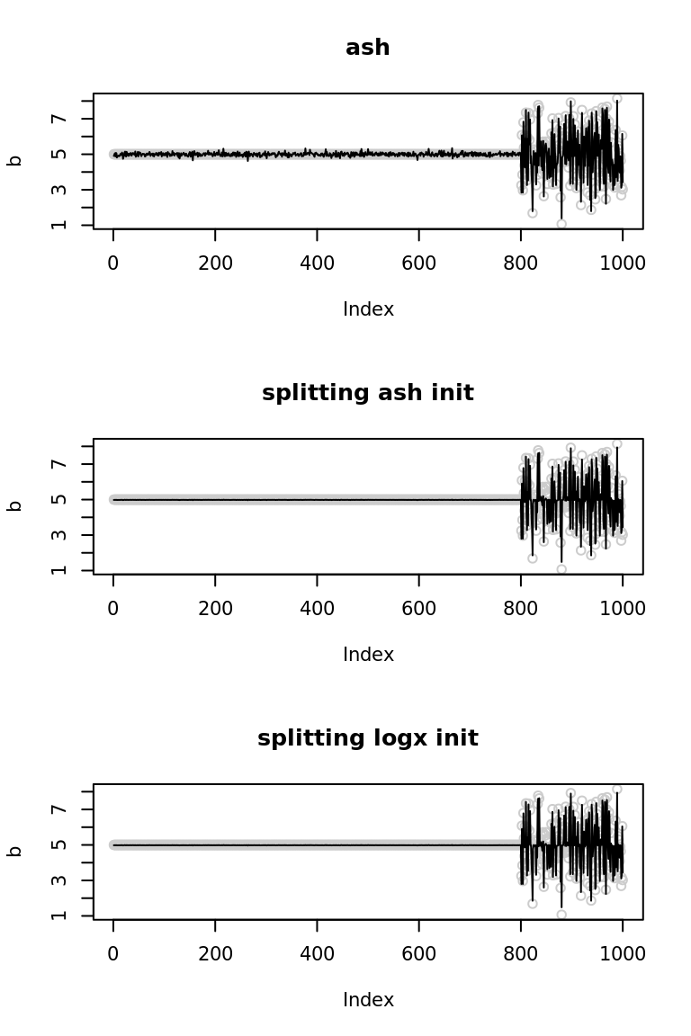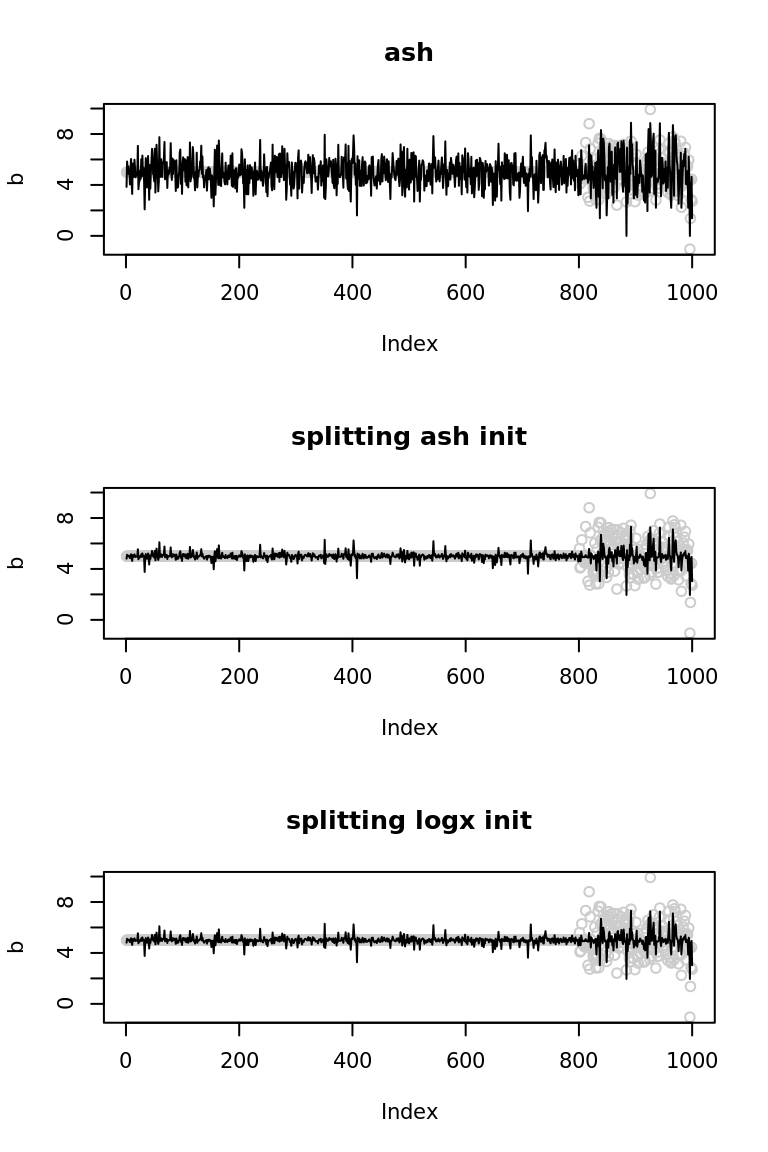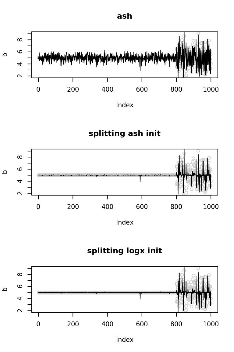 plot(b,col='grey80',ylab='b',main='splitting logx init')