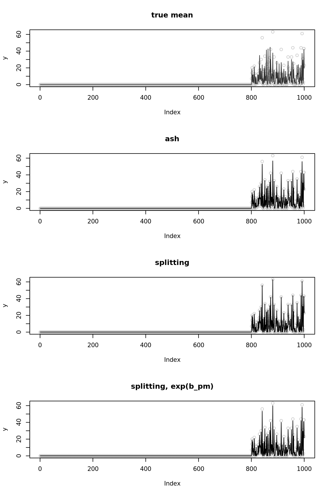 ylim = range(c(y,lambda,fit_split_ash_init$posterior$mean_exp_b,exp(fit_split_ash_init$posterior$mean_b)))