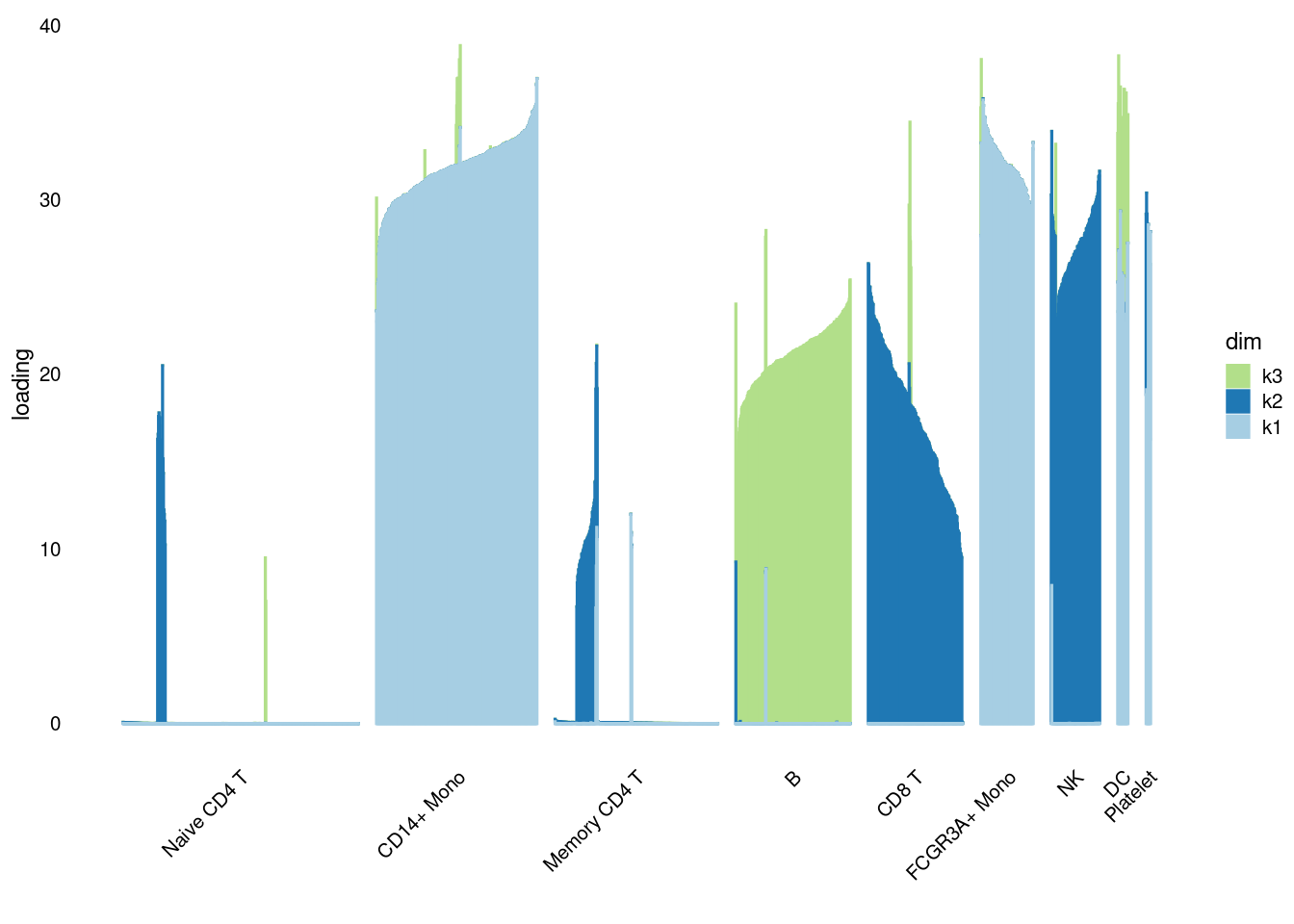 plot.factors(pbmc3k_nonnegL_pe$fit_flash,pbmc3k$cell_type,nonnegative = T)