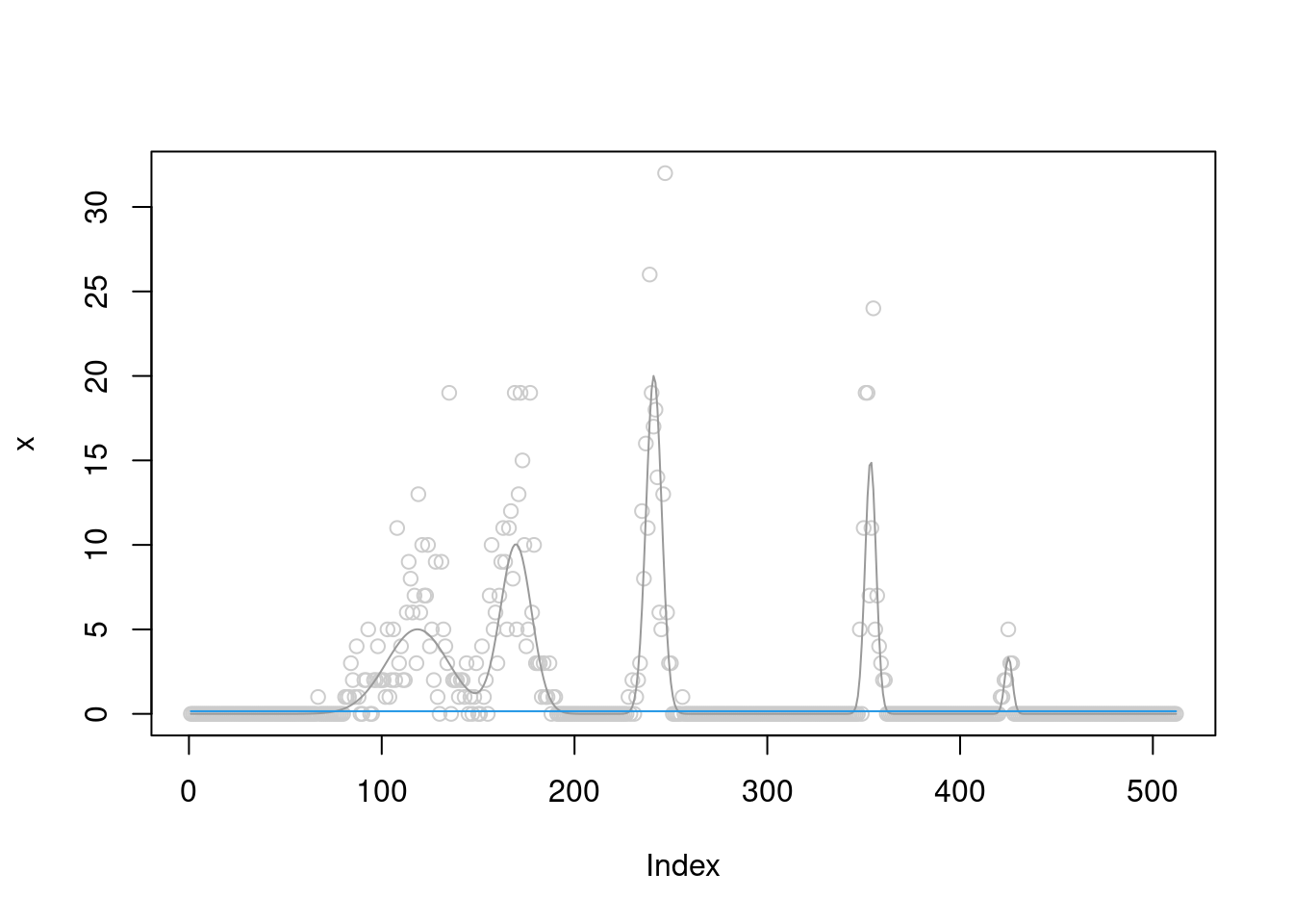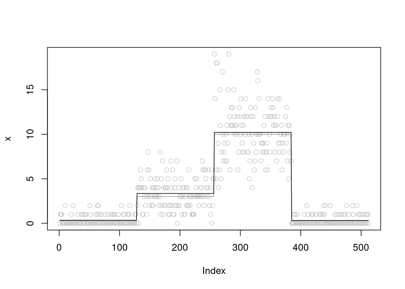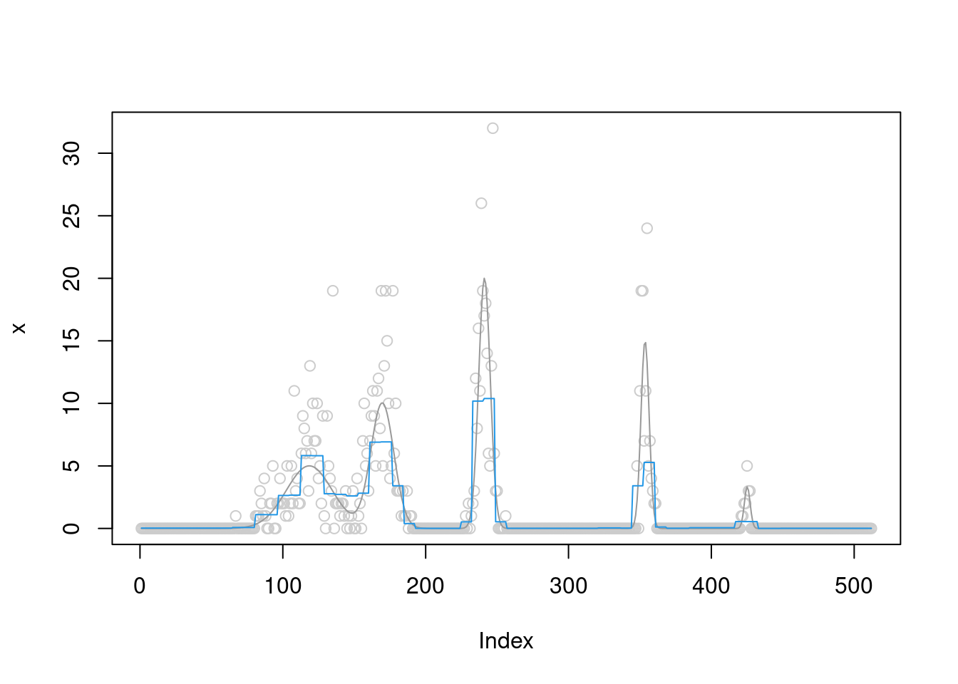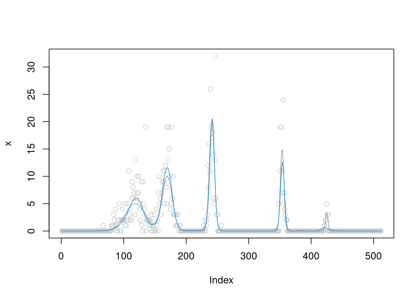 fit = pois_smooth_split(x,maxiter=300,verbose = T,tol=1e-10,filter.number = 1)