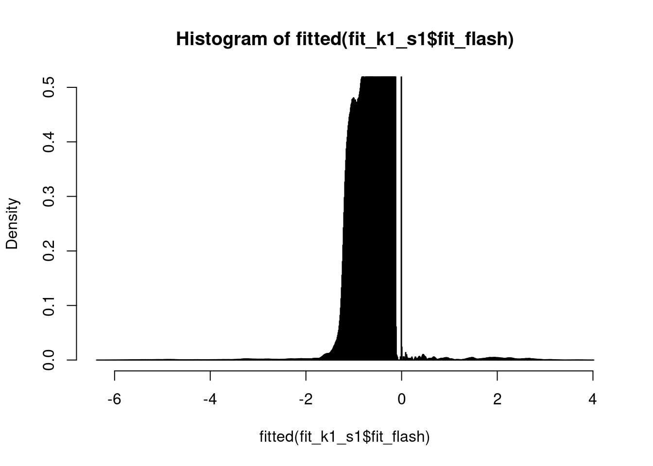 hist(fitted(fit_k1_s1$fit_flash),breaks = 1000,probability = T,ylim=c(0,0.5))