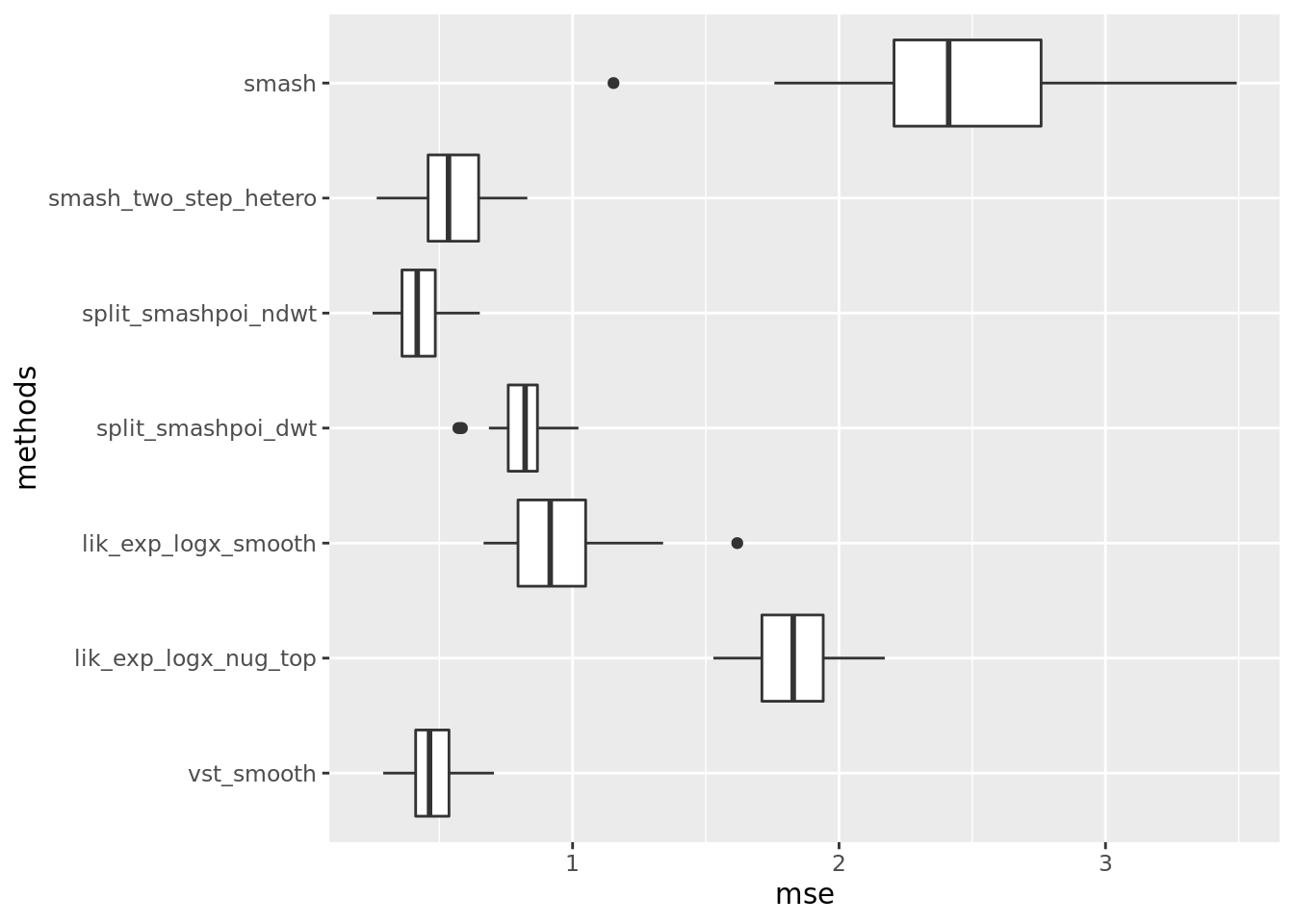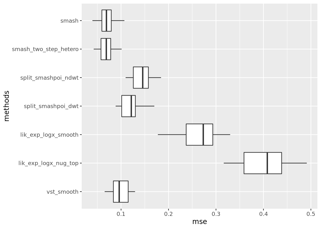 include_methods = c('vst_smooth','lik_exp_logx_nug_top','lik_exp_logx_smooth','split_smashpoi_ndwt','split_smashpoi_dwt','smash_two_step_hetero','smash')