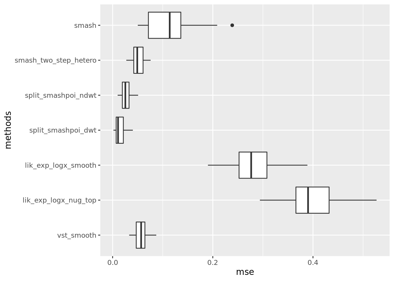 include_methods = c('vst_smooth','lik_exp_logx_nug_top','lik_exp_logx_smooth','split_smashpoi_ndwt','split_smashpoi_dwt','smash_two_step_hetero','smash')