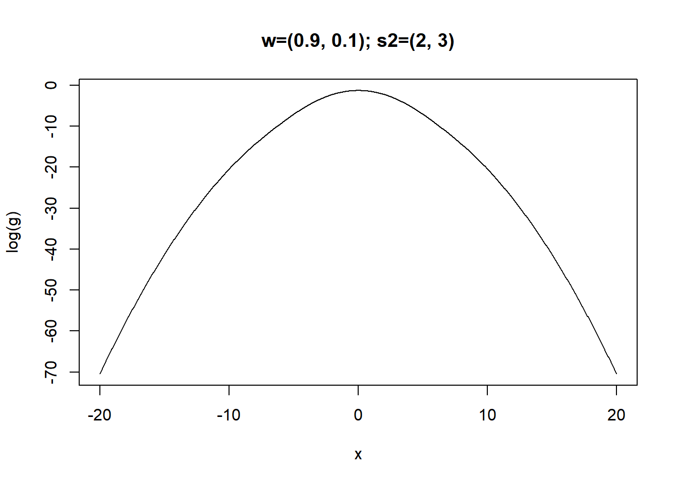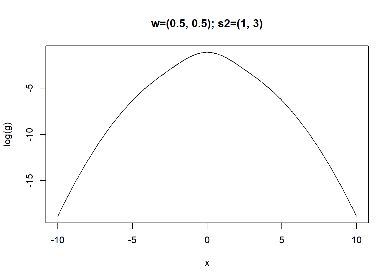 return(log(sum(w/sqrt(2*pi*s2)*exp(-x^2/2/s2))))