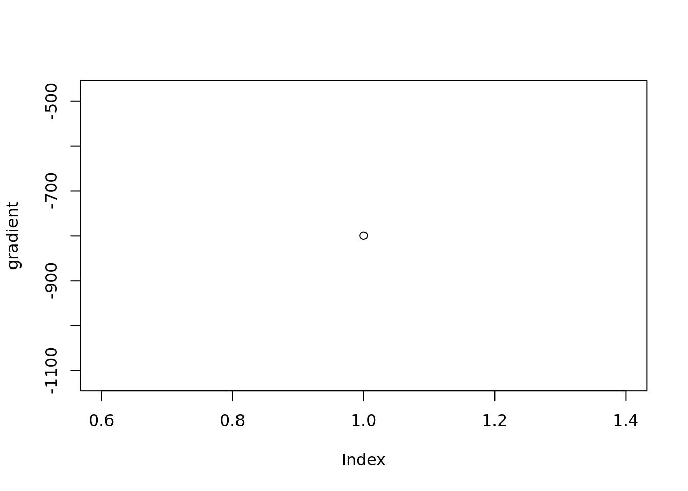 plot(vebpm:::f_obj_grad(out$output[[1]]$fitted_model$penalty_inversion$fit$optim_fit$par,out$sim_data$X[1,],out$output[[1]]$fitted_model$penalty_inversion$fitted_g$sd)[1033],ylab='gradient')