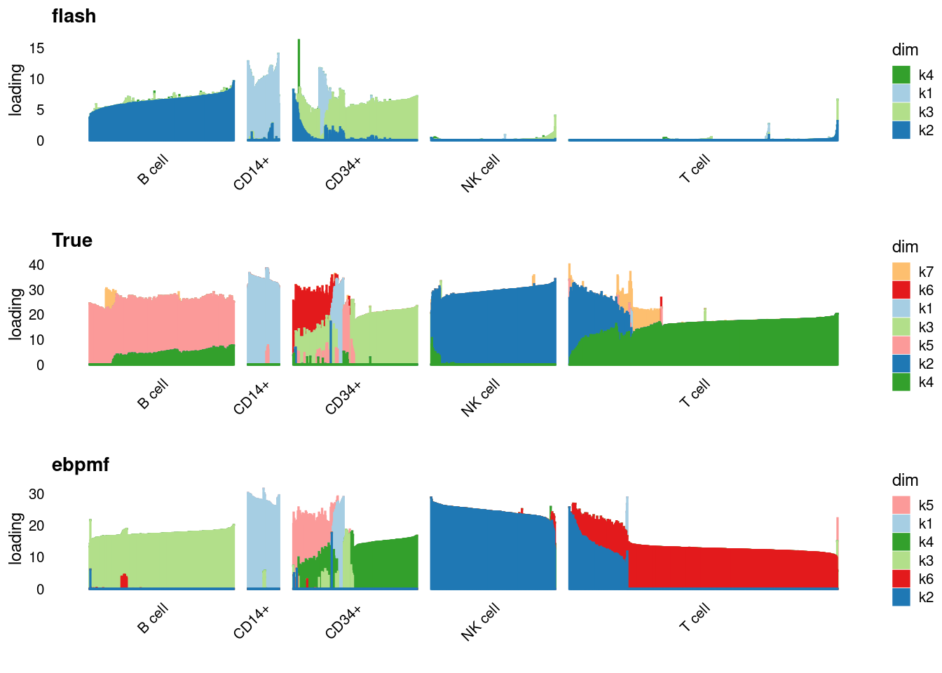 fitted an ebpmf model with nonnegtive loadings and factors on a PBMC