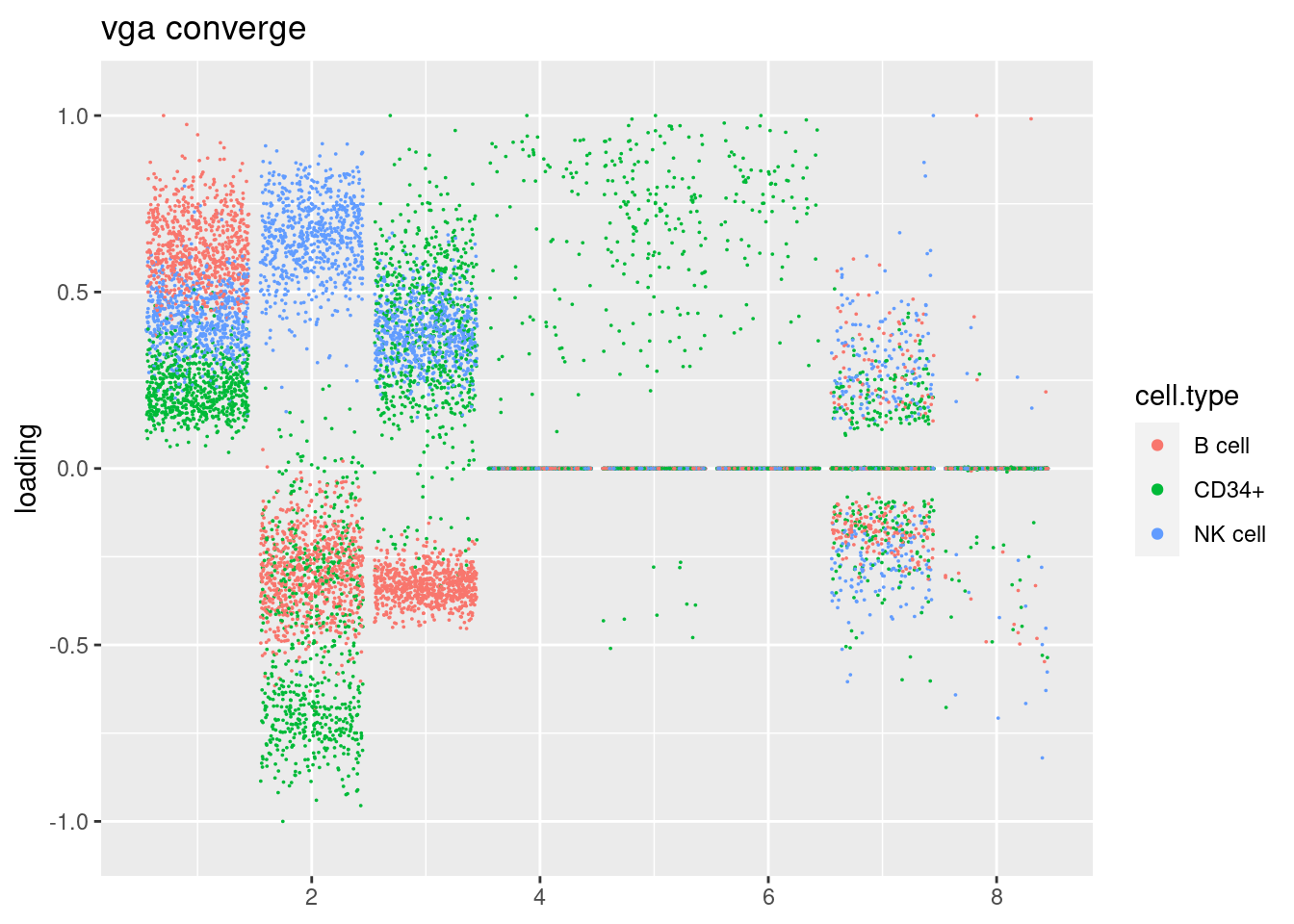 plot.factors(res1000$fit$fit_flash,cell_names,title='vga converge')