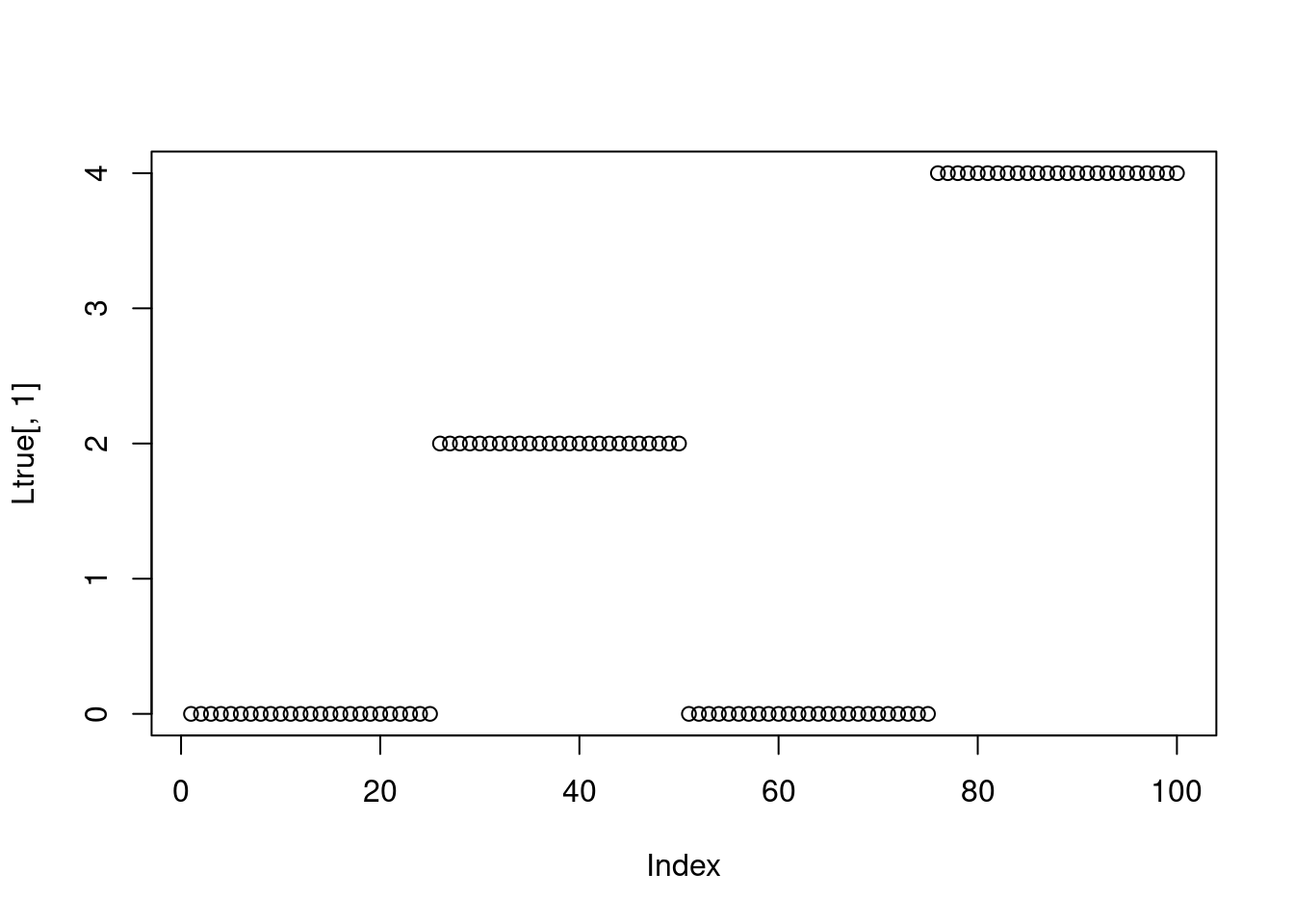 Ltrue = cbind(rep(c(0,2,0,4),each=N/4),rep(c(0,0,2,2),each=N/4))
