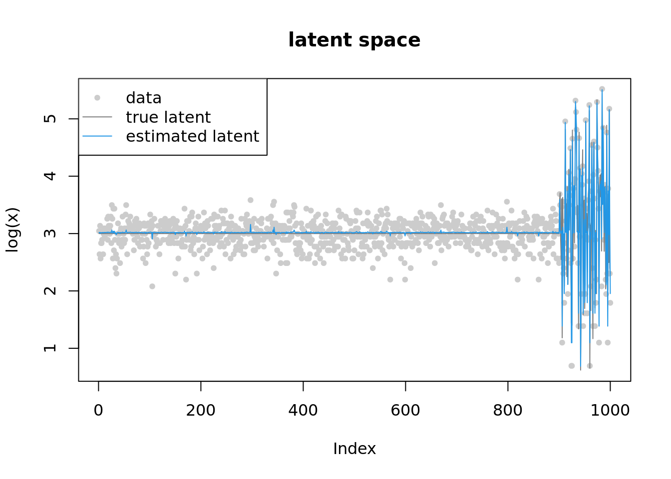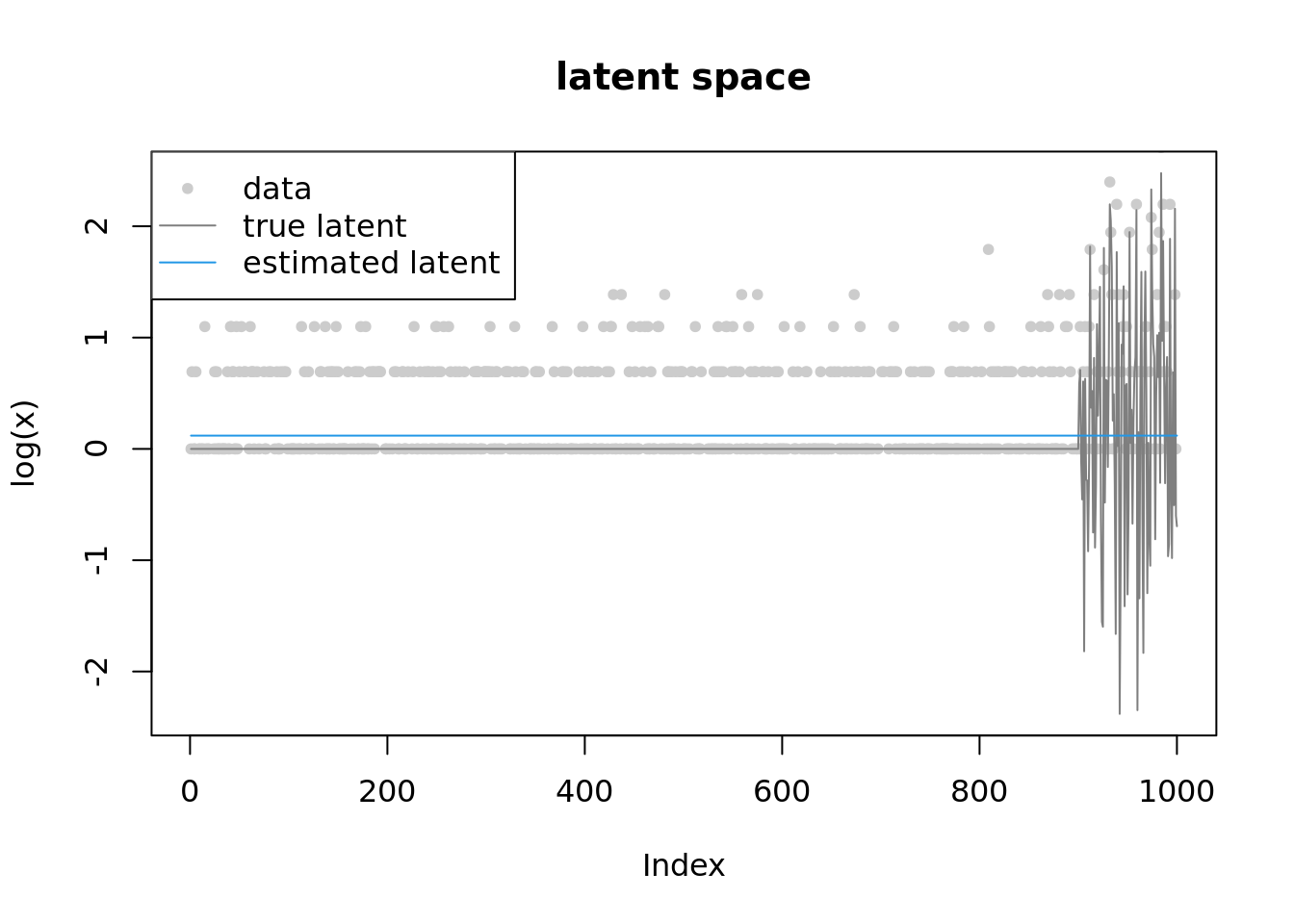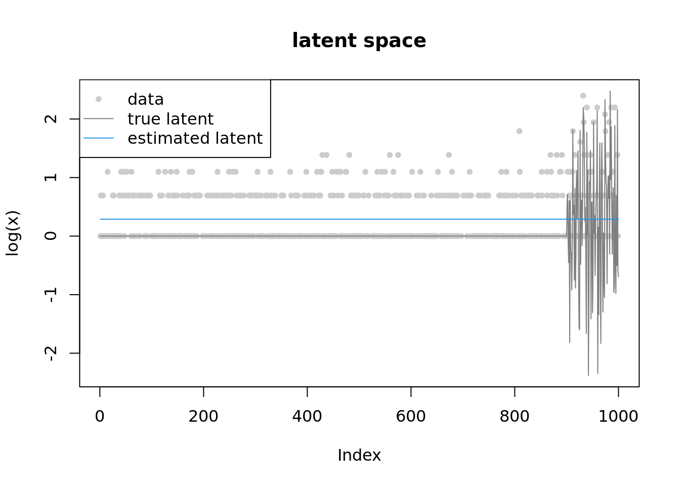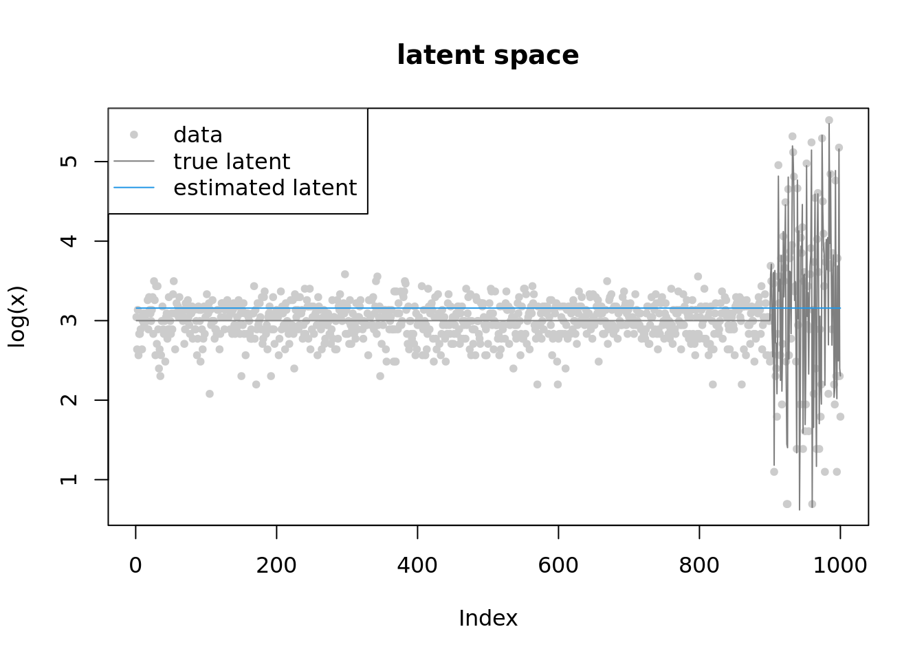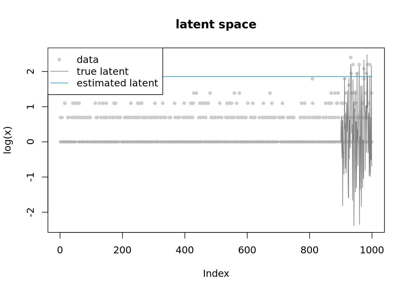 legend('topleft',c('data','true latent','estimated latent'),pch=c(20,NA,NA),lty=c(NA,1,1),col=c('grey80','grey50',4))