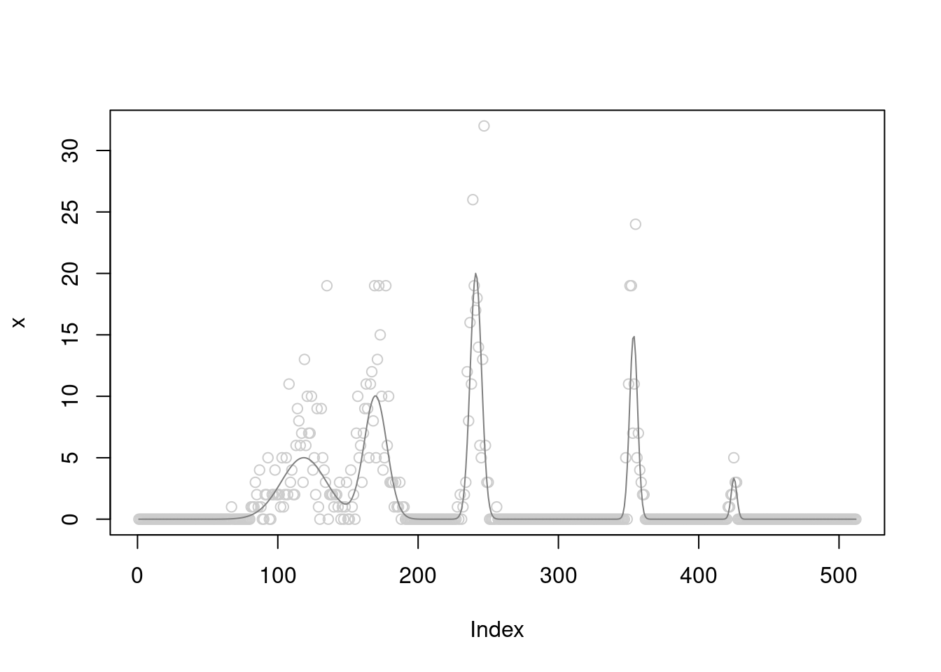 fit = pois_smooth_split(x,maxiter=300,verbose = T,tol=1e-10,filter.number = 1)