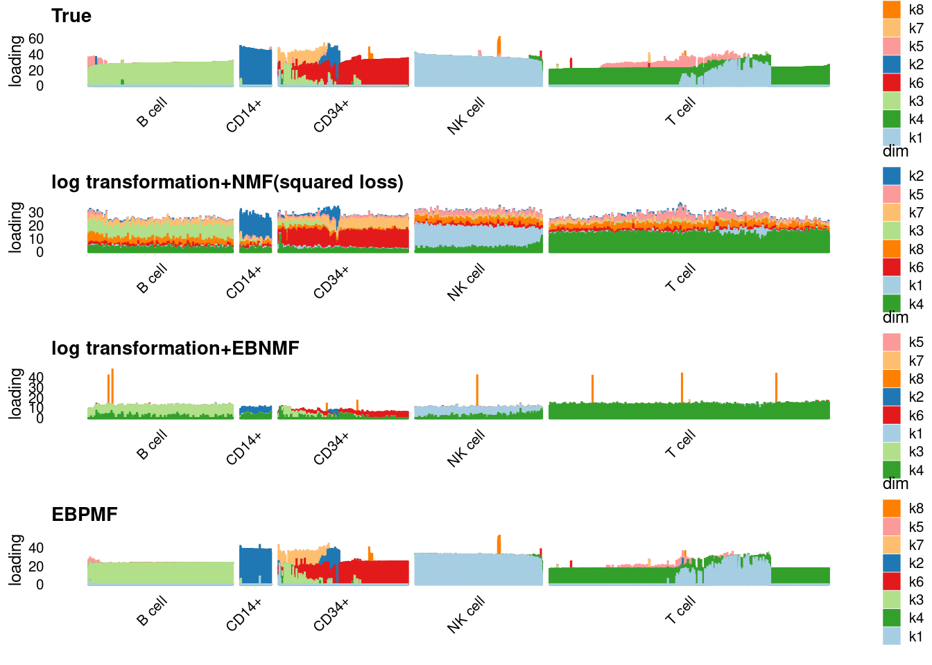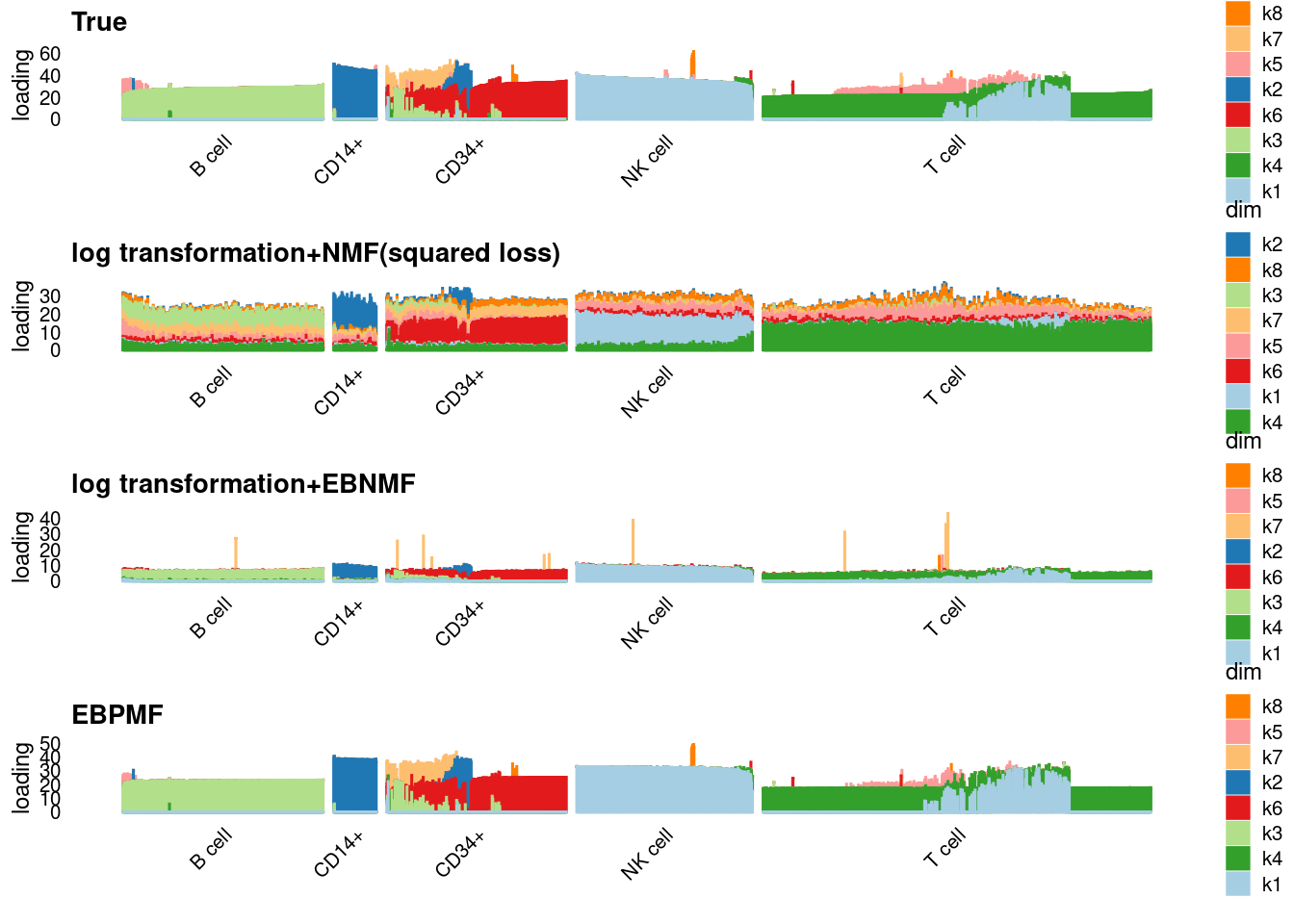 So this is a revised version of “Large true variance, large init variance” in a previous simulation study. I added revised version of ebnmf, and added the nmf with squared loss.