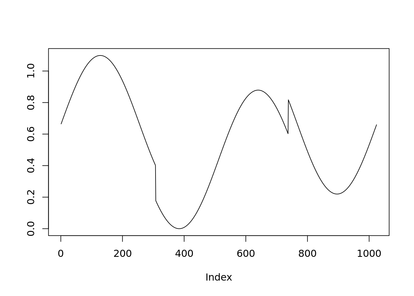 \[y_i\sim Poisson(\exp(\mu_i+\epsilon_i)),\epsilon_i\sim N(0,\sigma^2).\] The \(\mu\) is smooth and has block structures as follows: