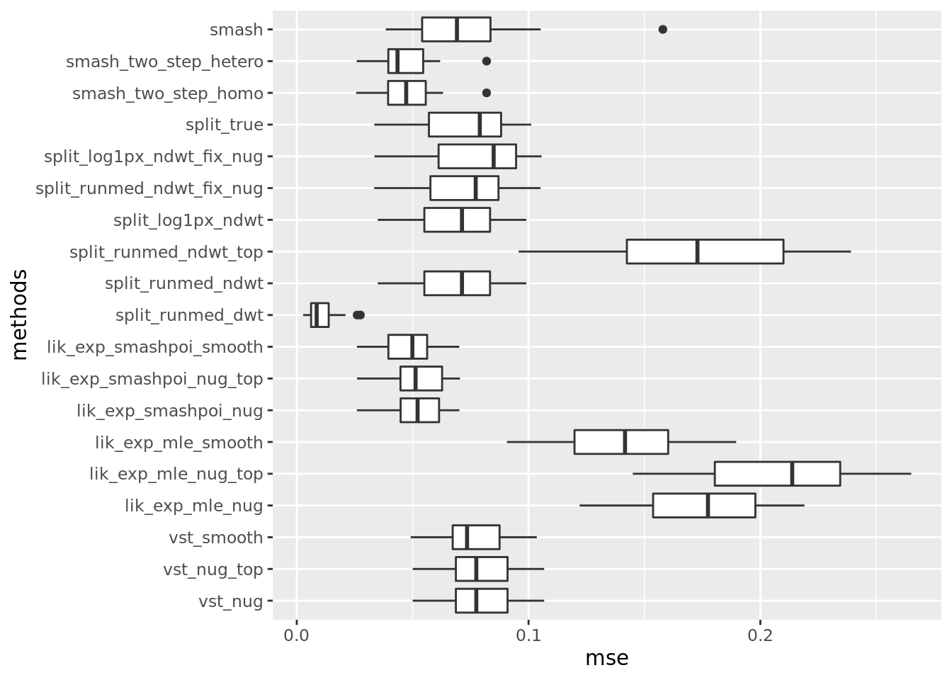 get_mse_mean(out,rm_method = c('smash','vst_nug_top','vst_nug','vst_smooth','smash_two_step_hetero','smash_two_step_homo'))
