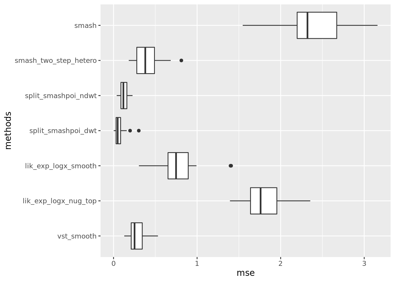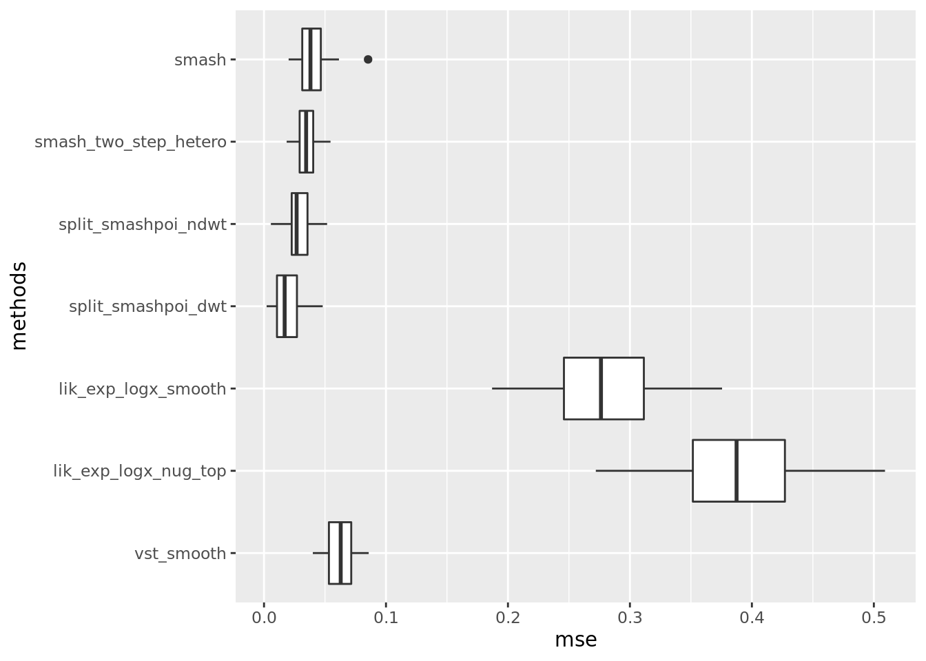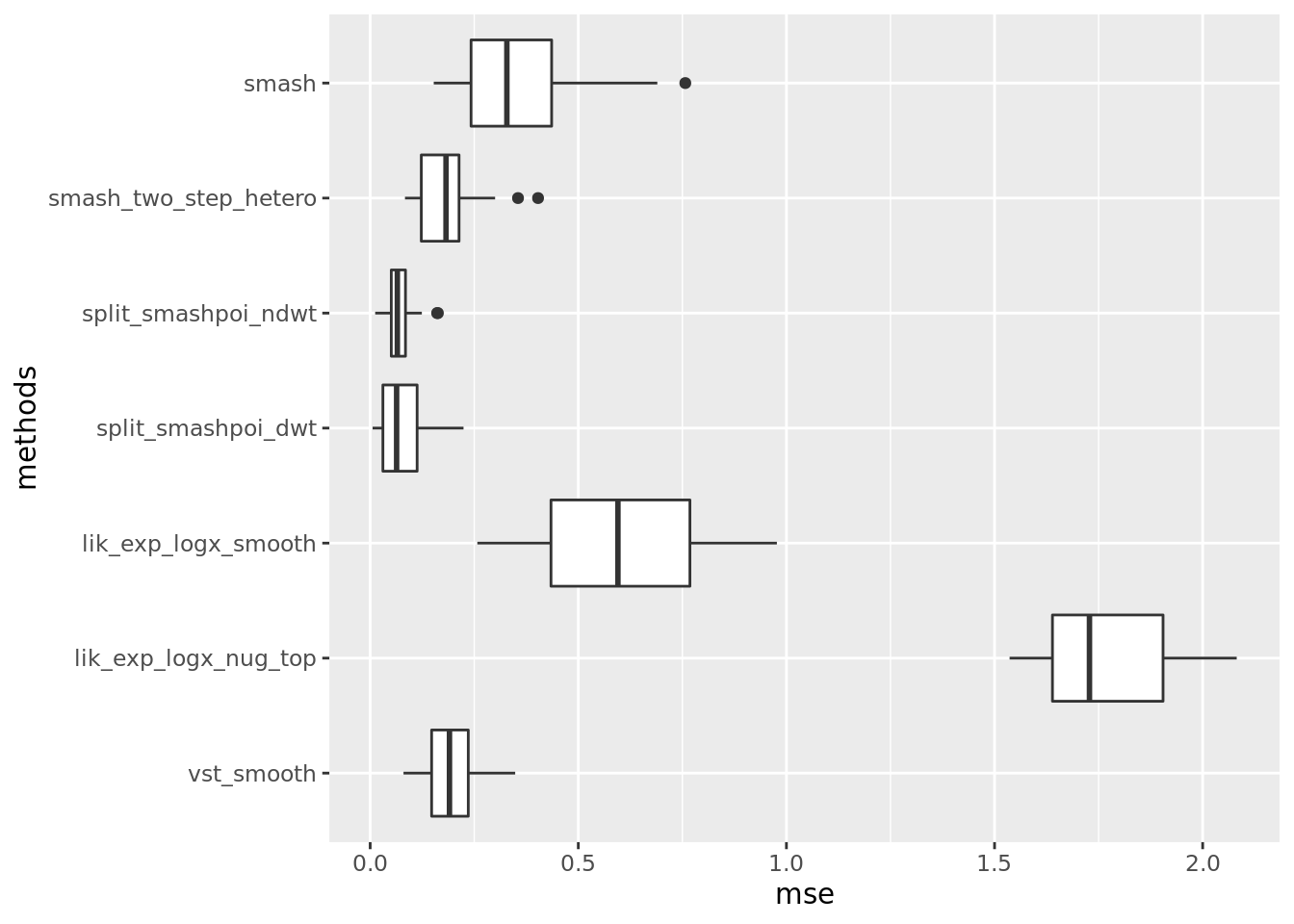 include_methods = c('vst_smooth','lik_exp_logx_nug_top','lik_exp_logx_smooth','split_smashpoi_ndwt','split_smashpoi_dwt','smash_two_step_hetero','smash')