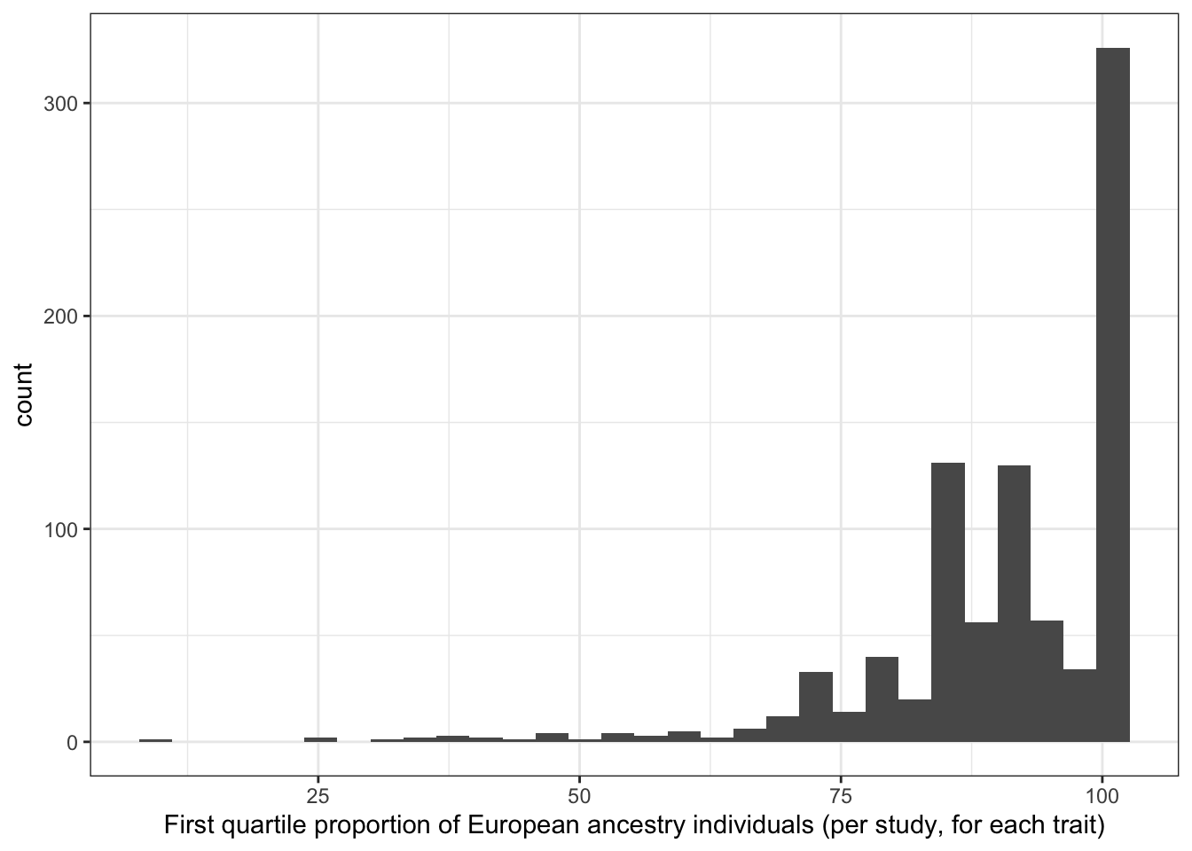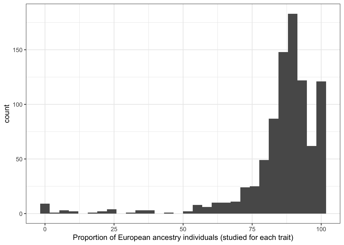 [1] "Proportion European vs. average number of individuals per study - spearman correlation - only traits with > 5 studies"
