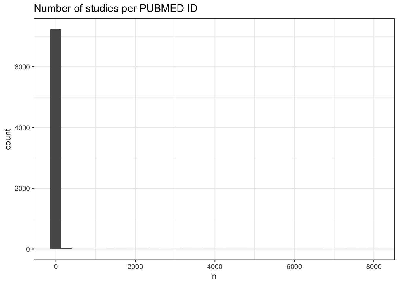 labs(title = "Number of studies per PUBMED ID")