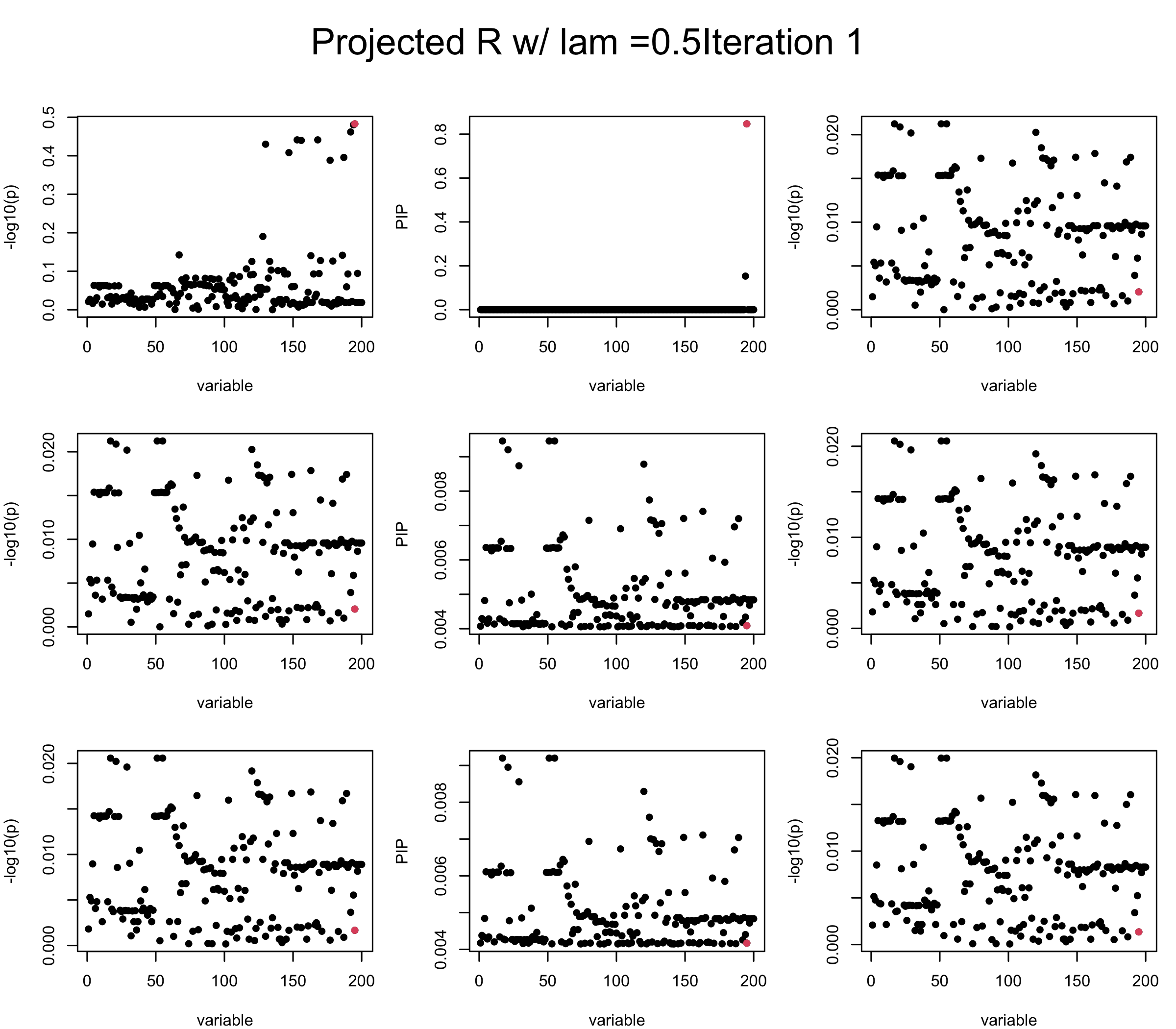 Consider multiplying \(vv^{\top}\) with some \(\alpha > 1\). We find that it does not improve control of the residual. When setting \(\alpha > 1.4\), SuSiE often gives error in training….