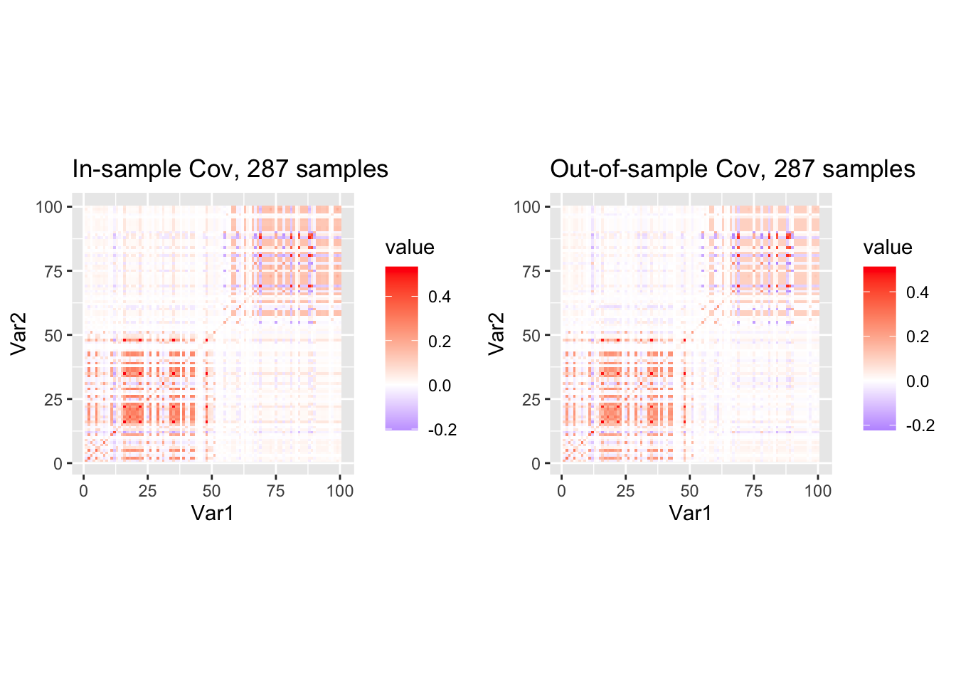 ggtitle(sprintf("Out-of-sample Cov, %d samples", nrow(X_out)))