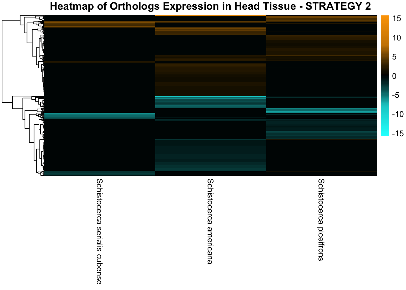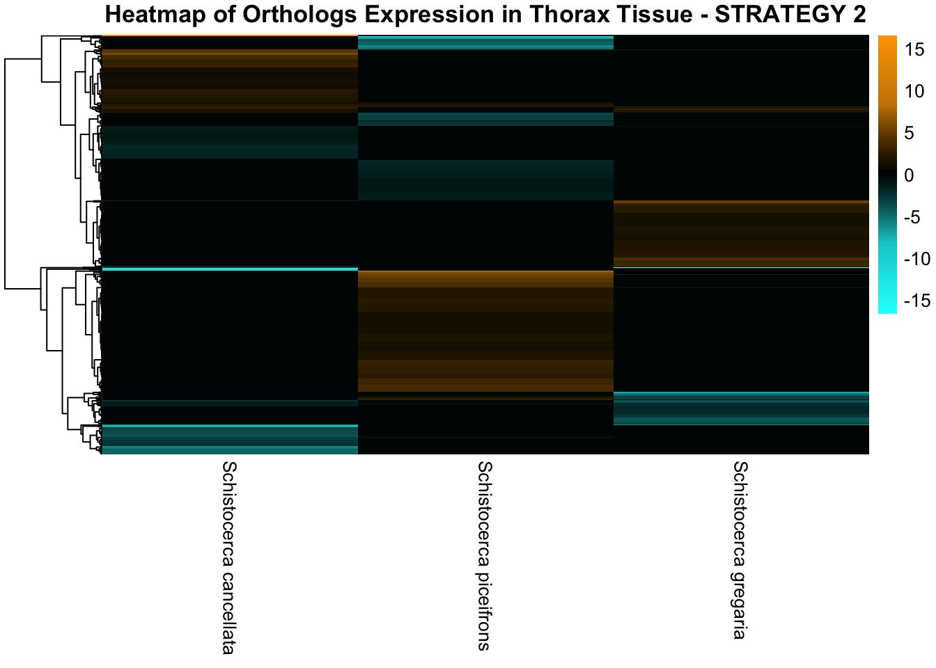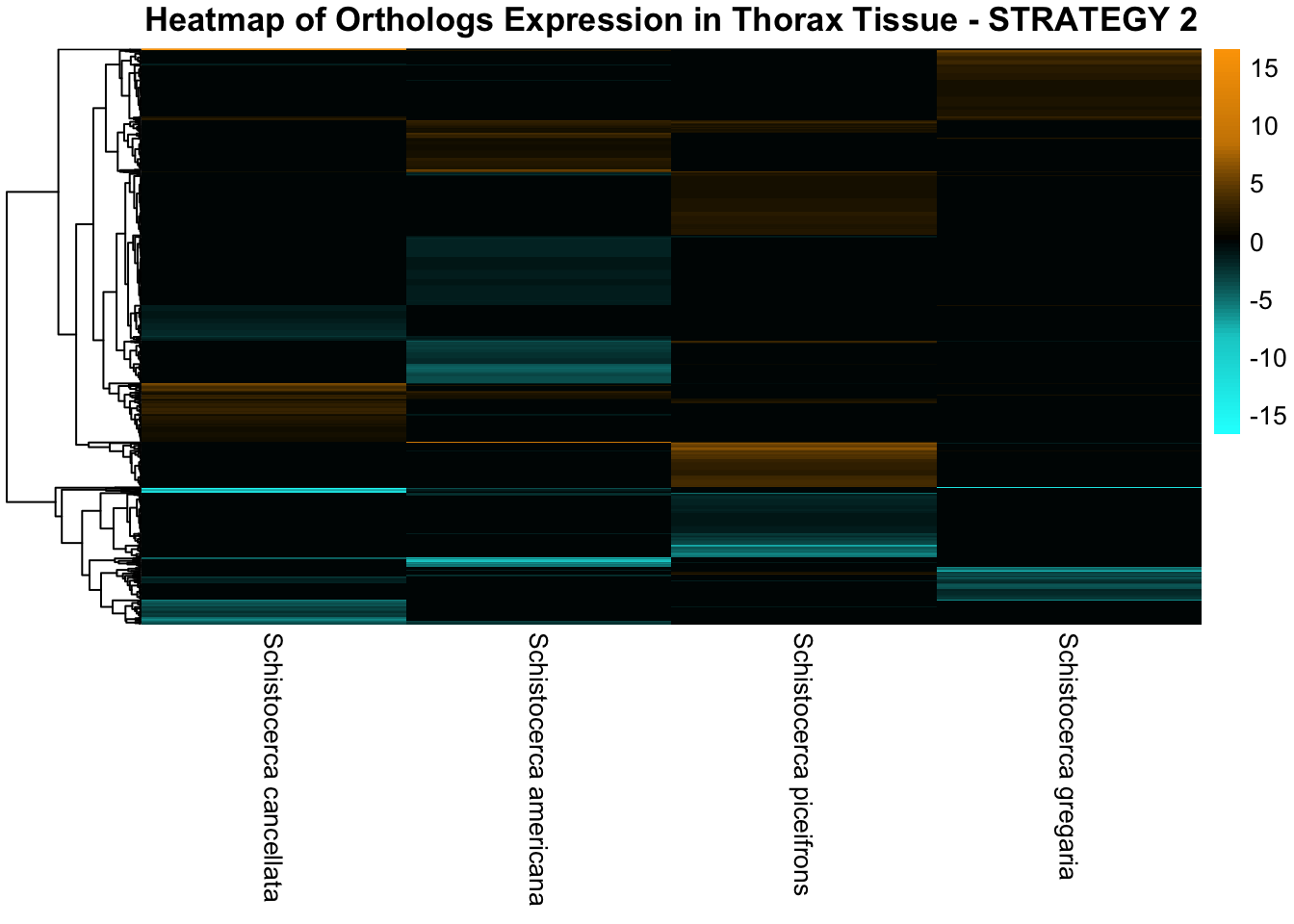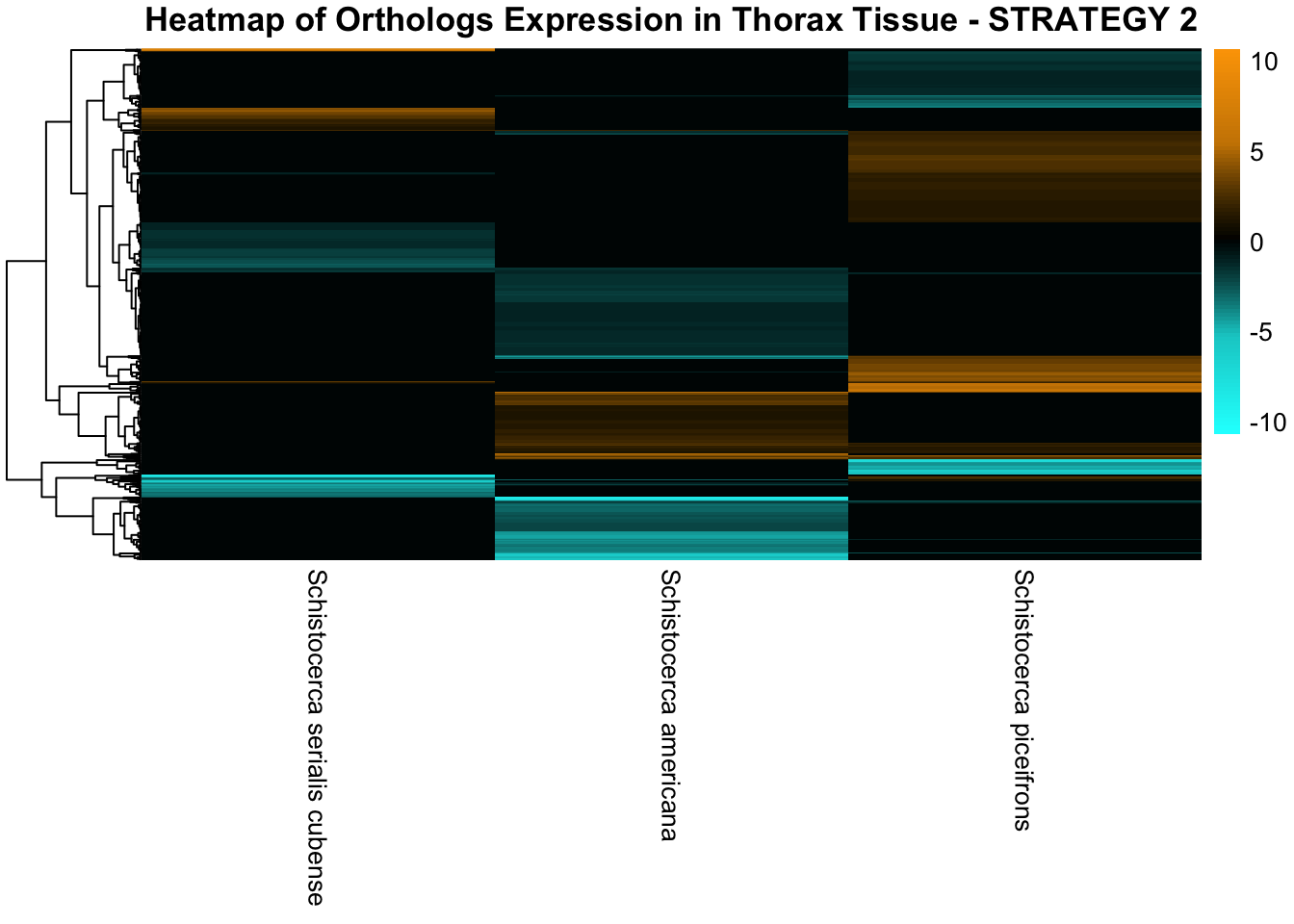 main = "Heatmap of Orthologs Expression in Head and Thorax Tissue - STRATEGY 2"