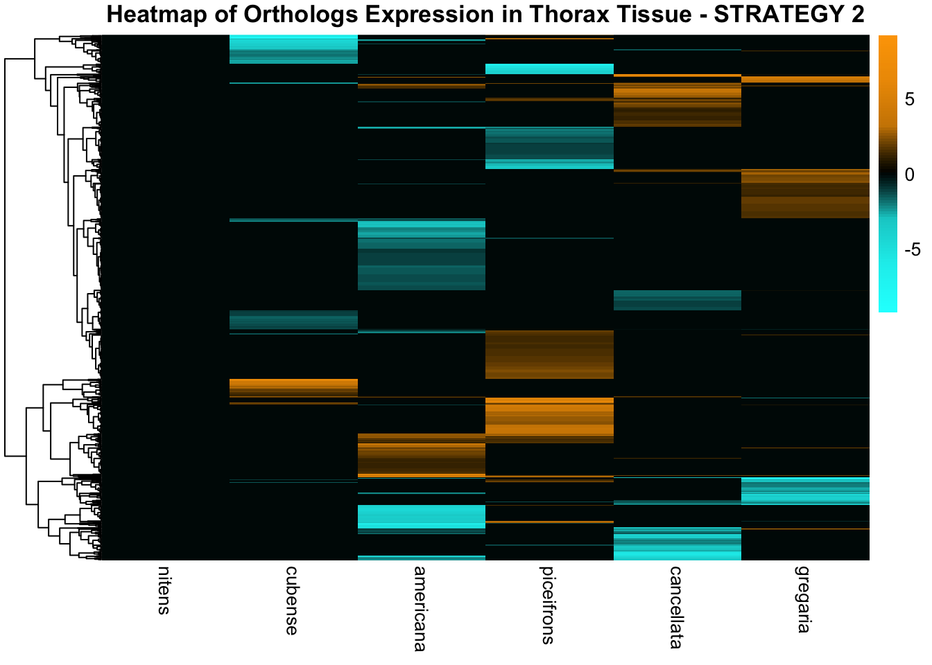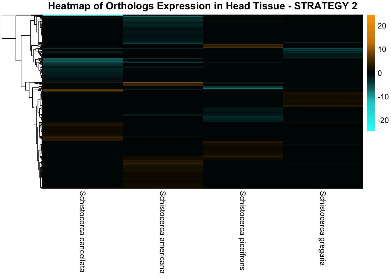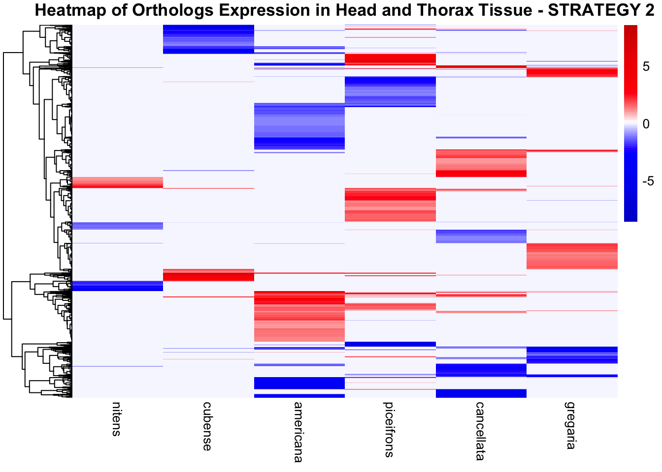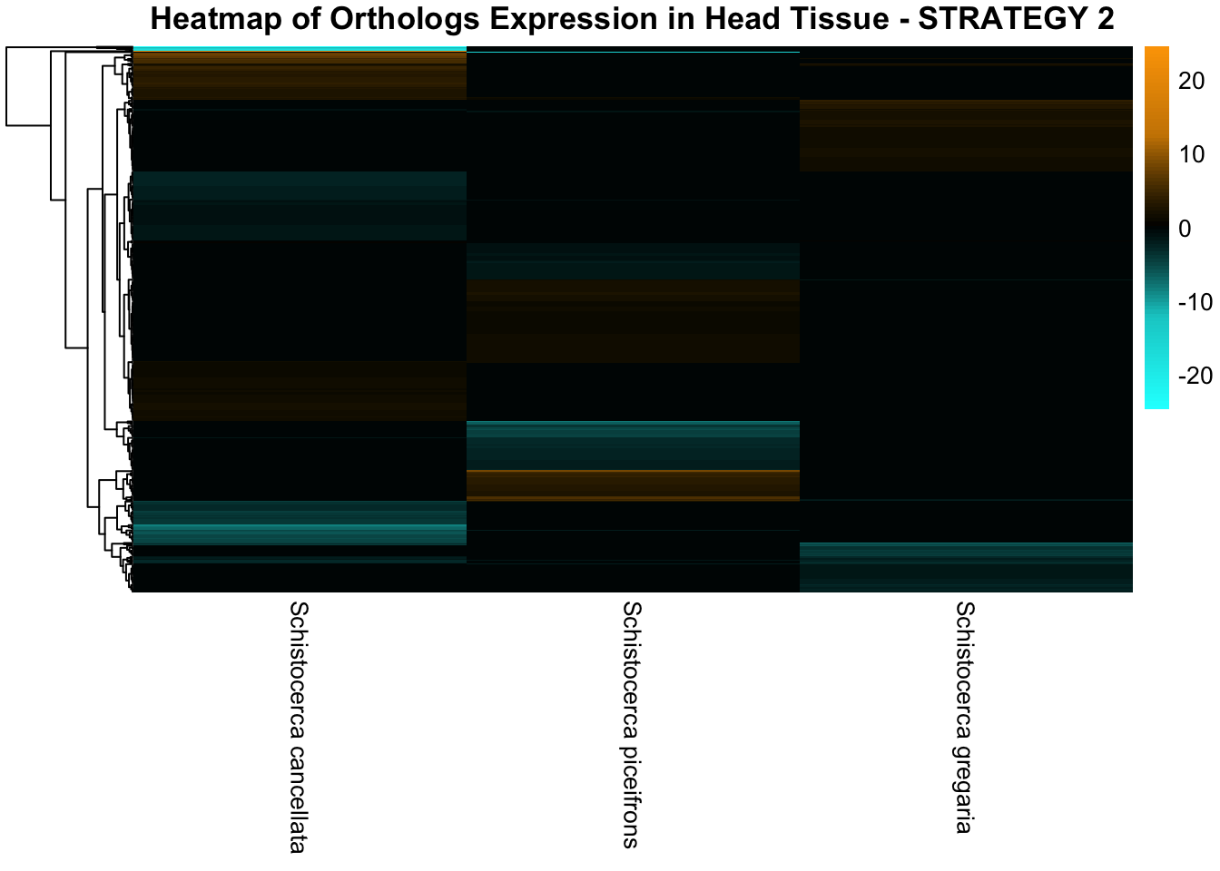 main = "Heatmap of Orthologs Expression in Head and Thorax Tissue - STRATEGY 2"