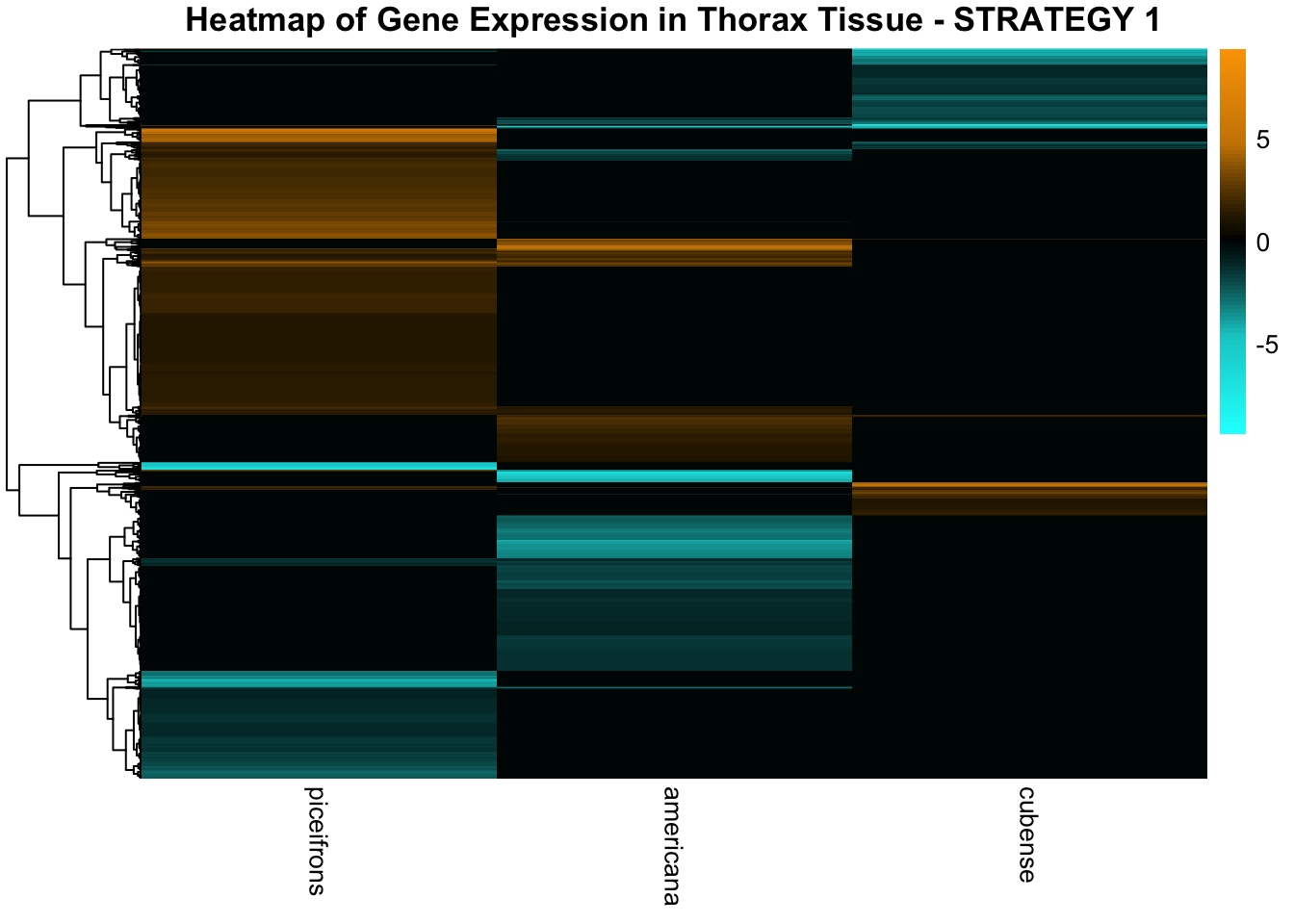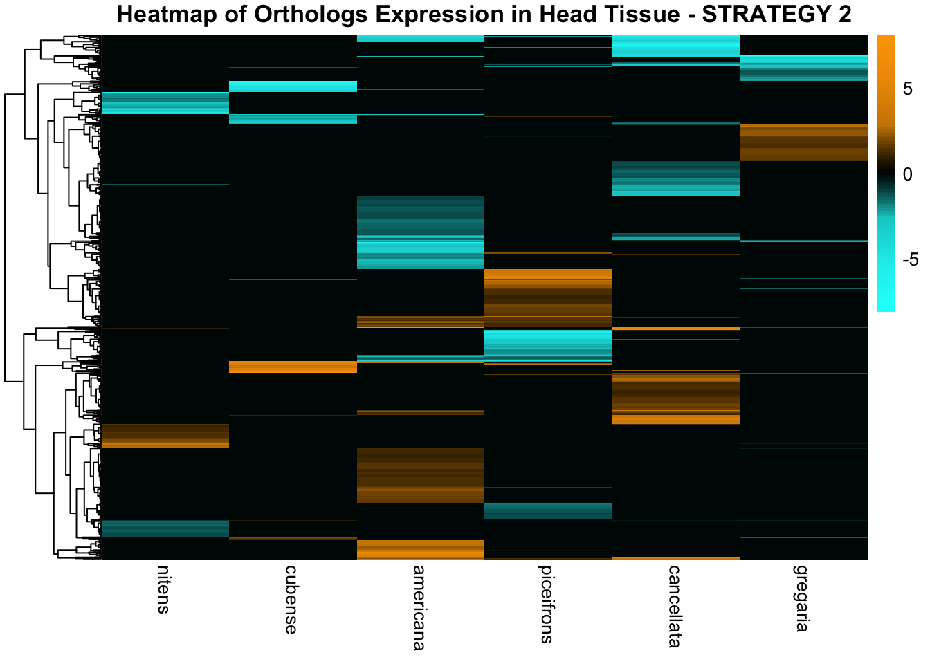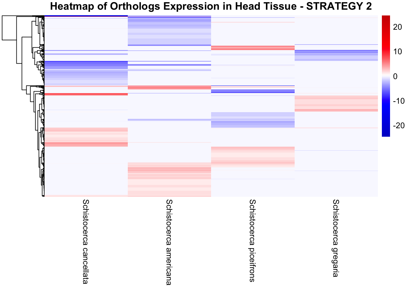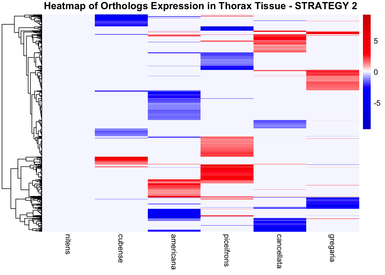 main = "Heatmap of Orthologs Expression in Head and Thorax Tissue - STRATEGY 2"
