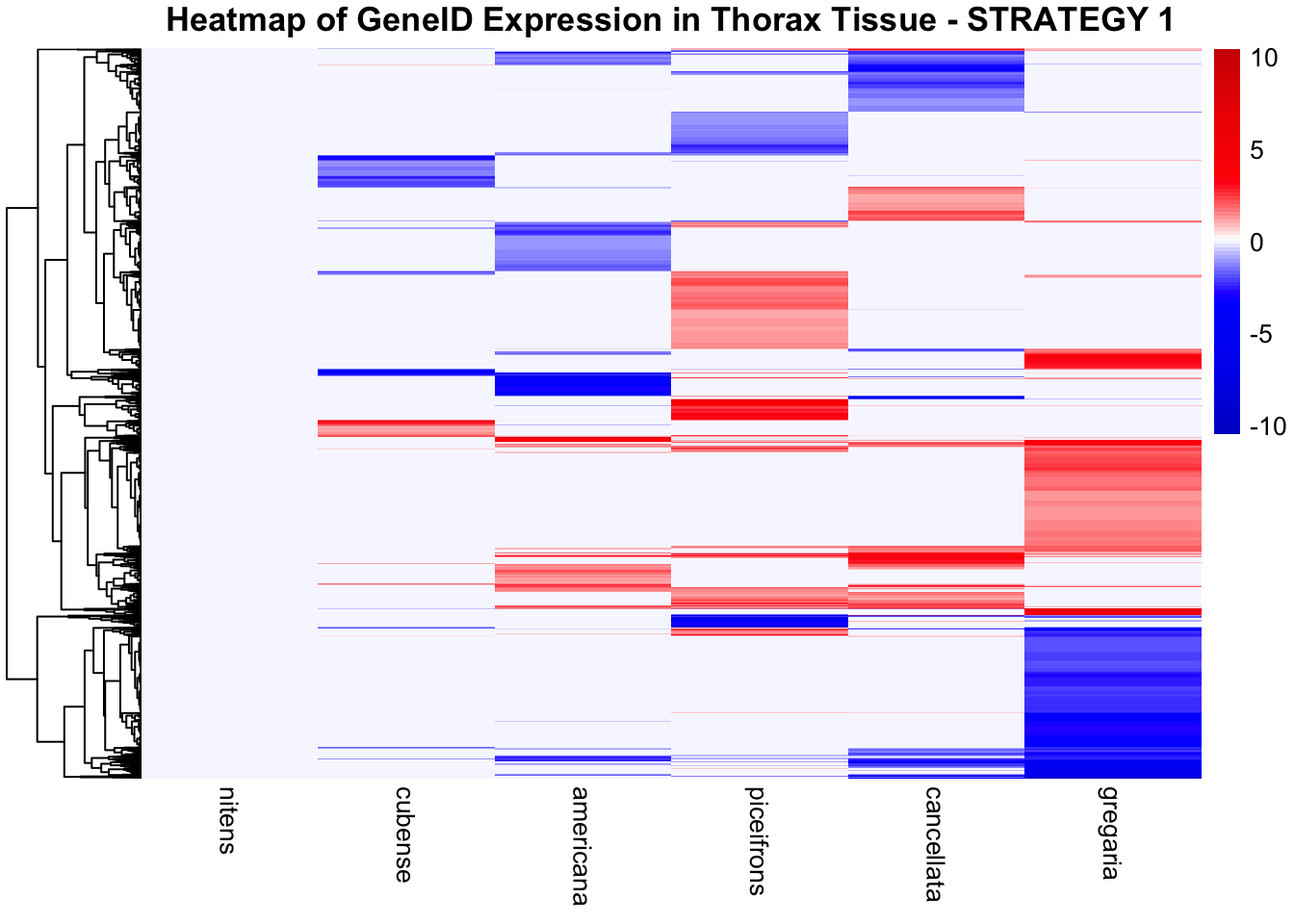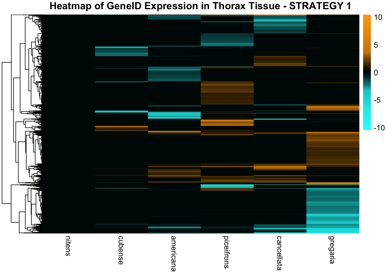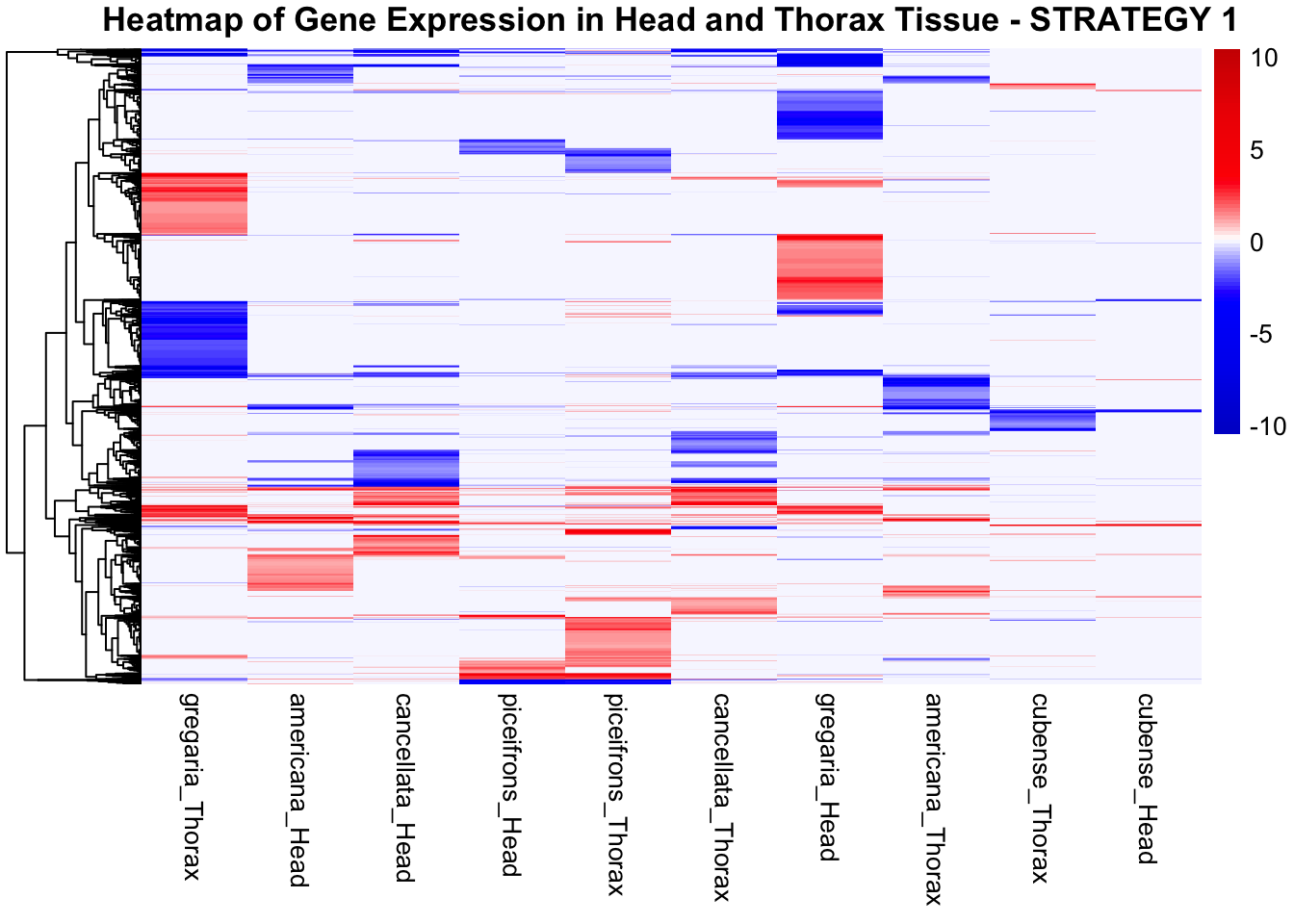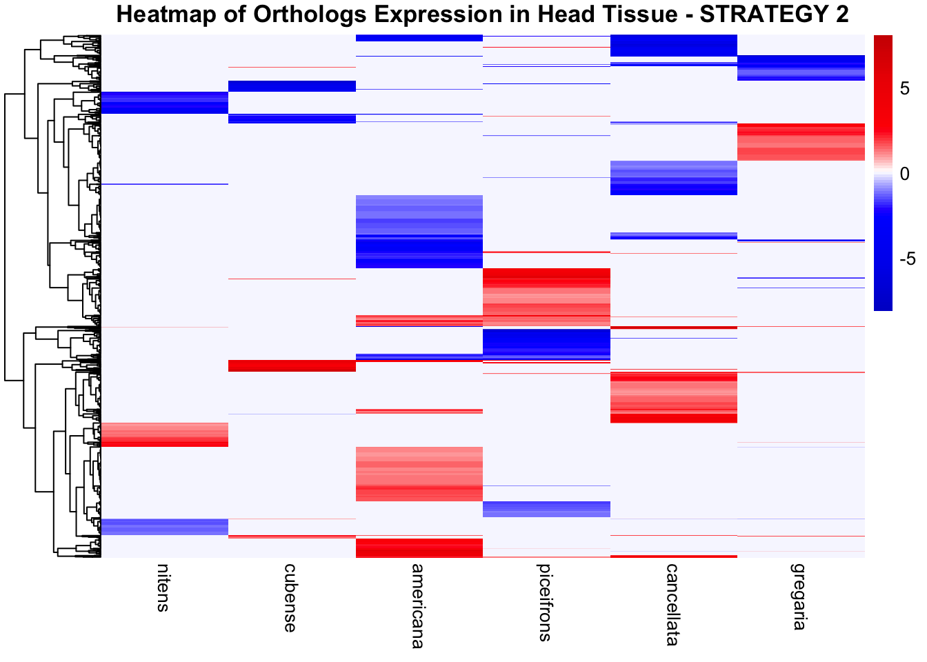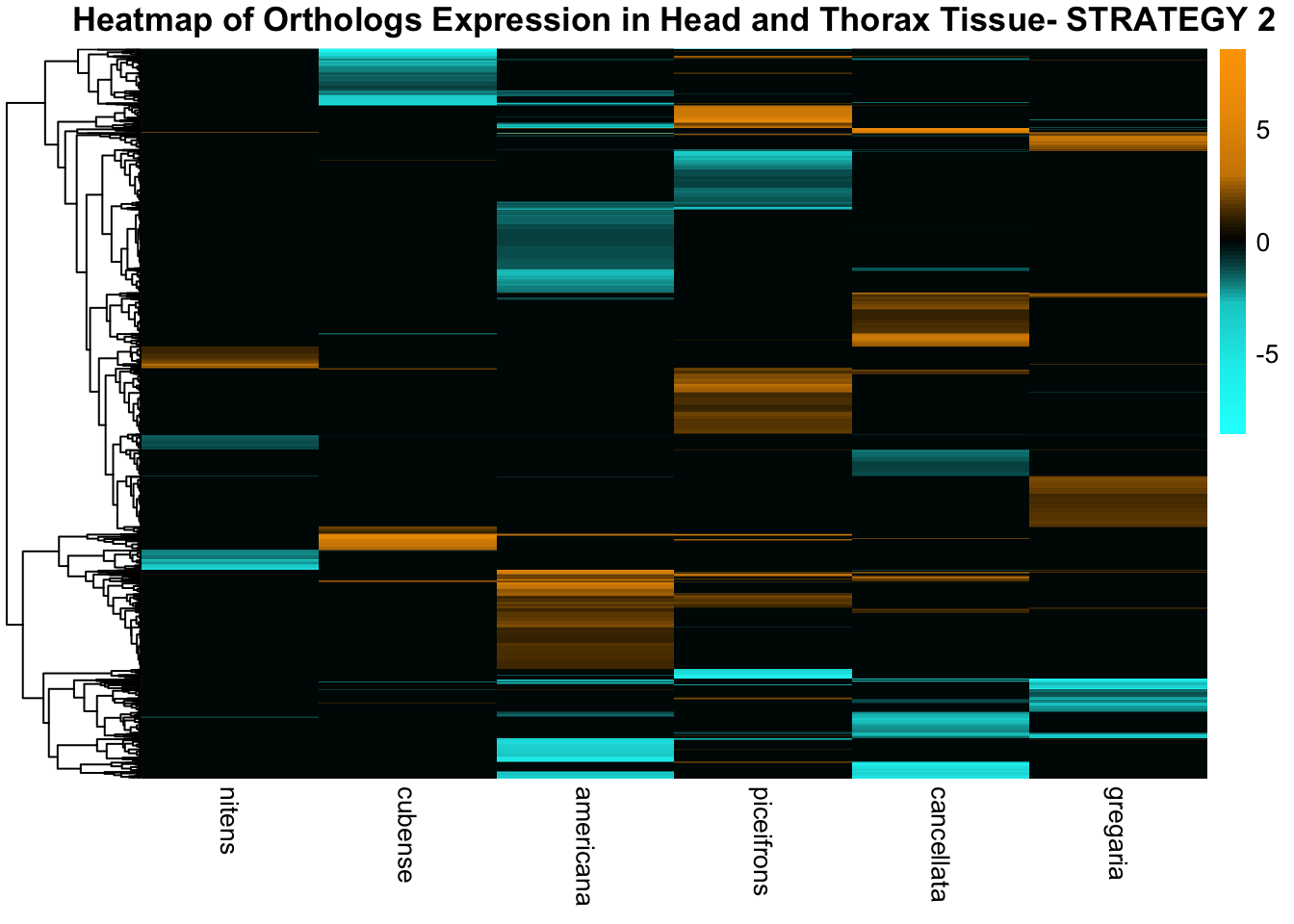 main = "Heatmap of Orthologs Expression in Head and Thorax Tissue- STRATEGY 2"