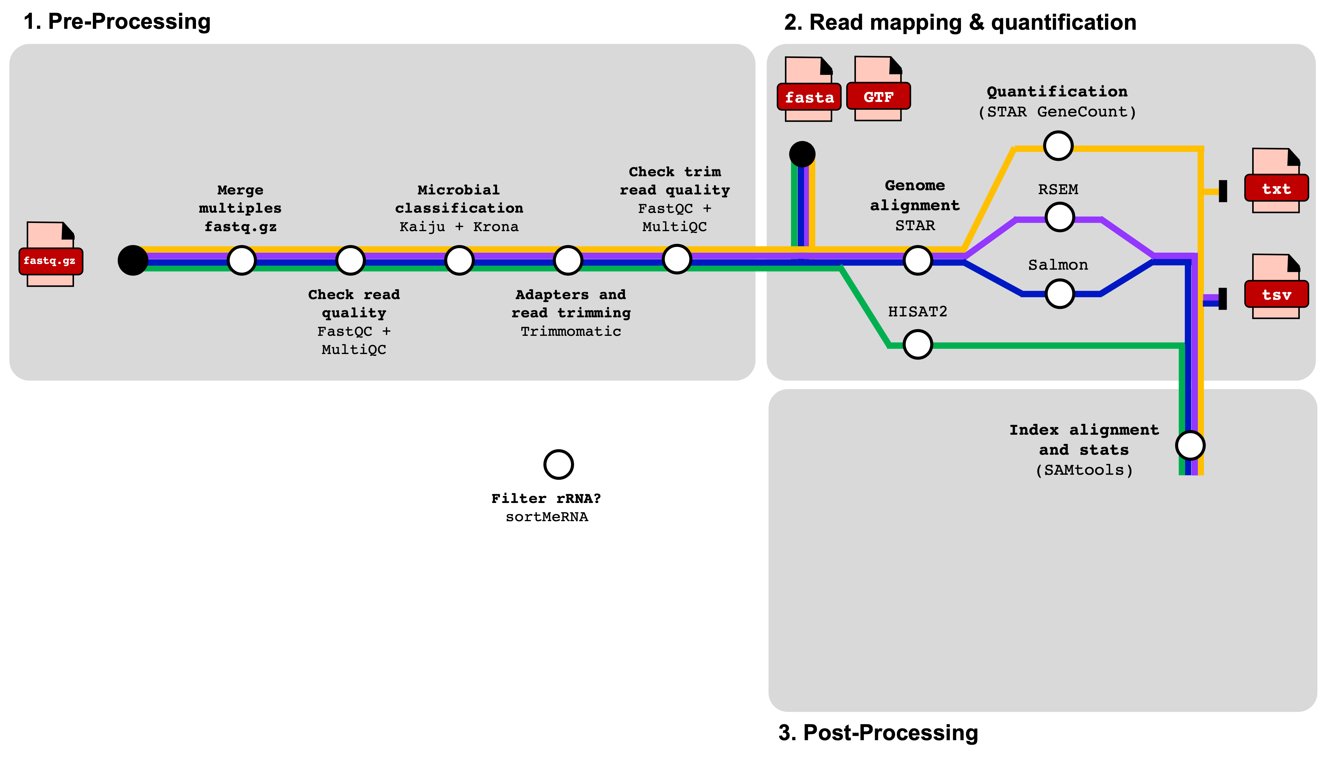 We use a Snakemake pipeline for each species. Therefore, it is essential to verify that each required software is installed and accessible. This can be done through various methods: 1) locally (e.g., cloned from GitHub or installed with admin access), 2) as a HPRC cluster module on the Grace cluster at Texas A&M University or 3) via a conda environment.