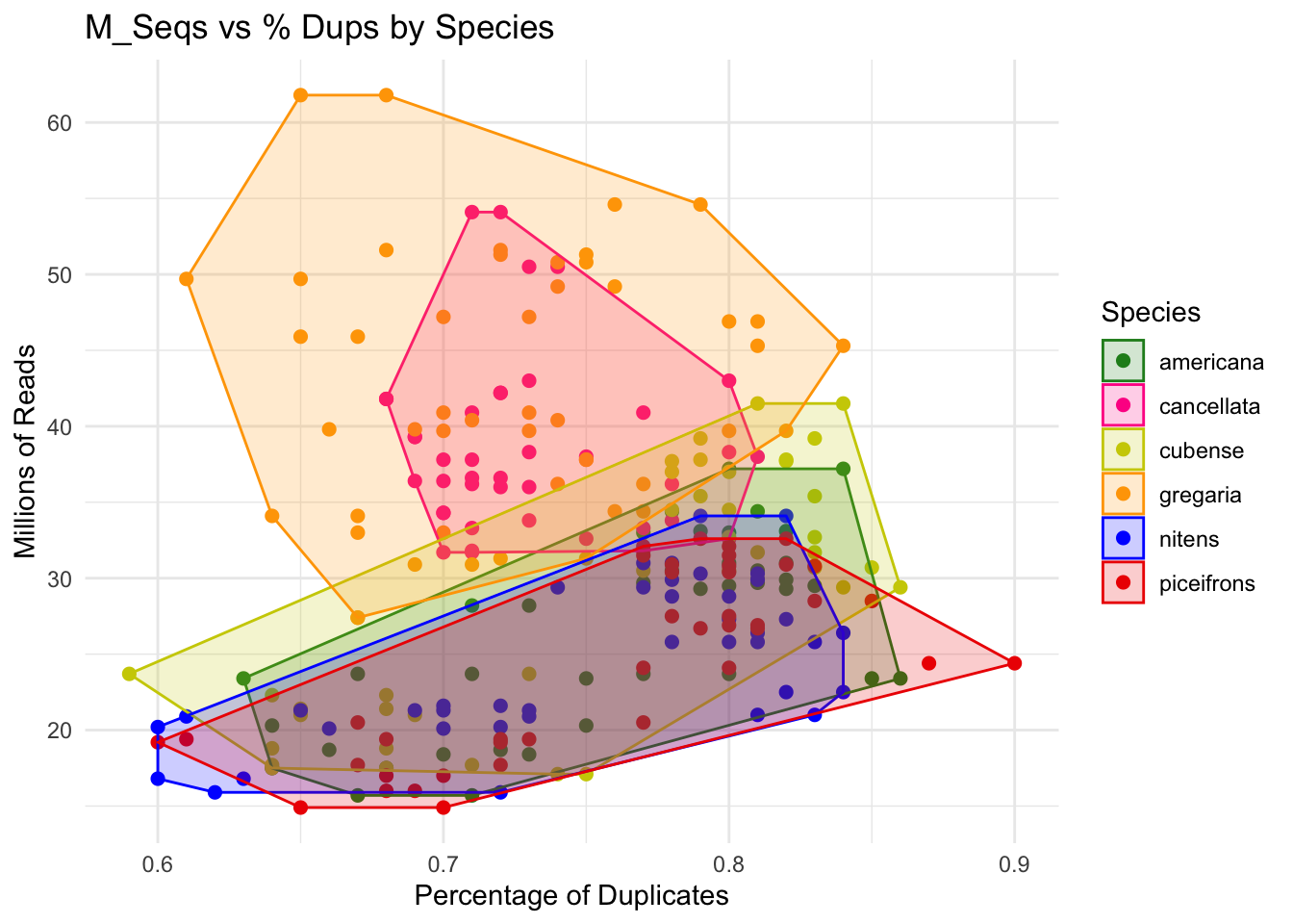 We always perform quality control checks after trimming to ensure that the clipping and filtering of sequences were not overly aggressive. Given the number of sequences we work with, manually inspecting each file immediately would be time-consuming. Instead, we adopt a random sampling approach across different species, rearing conditions, and tissues to see that the trimming process worked well.