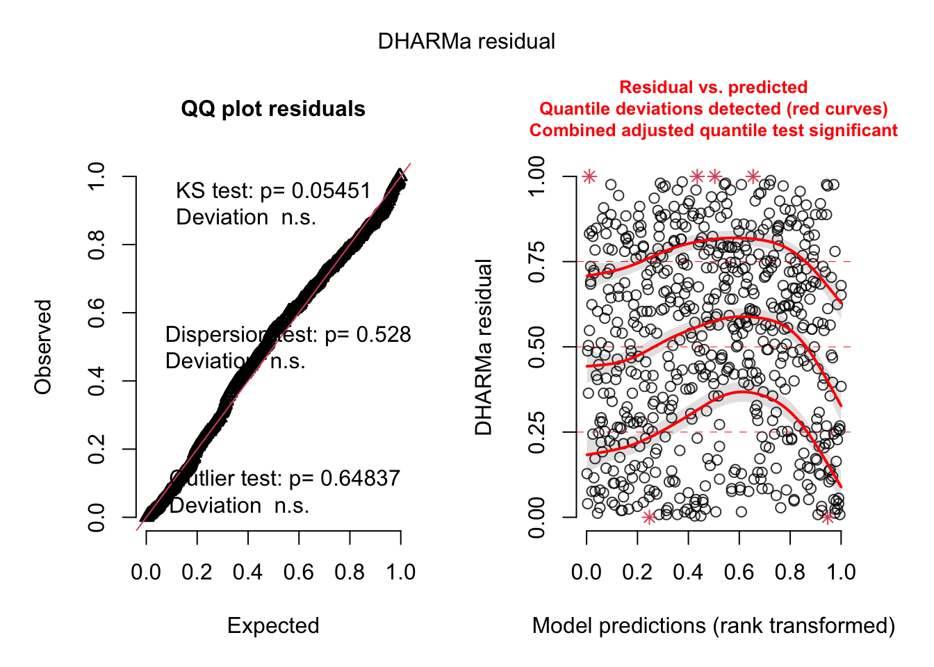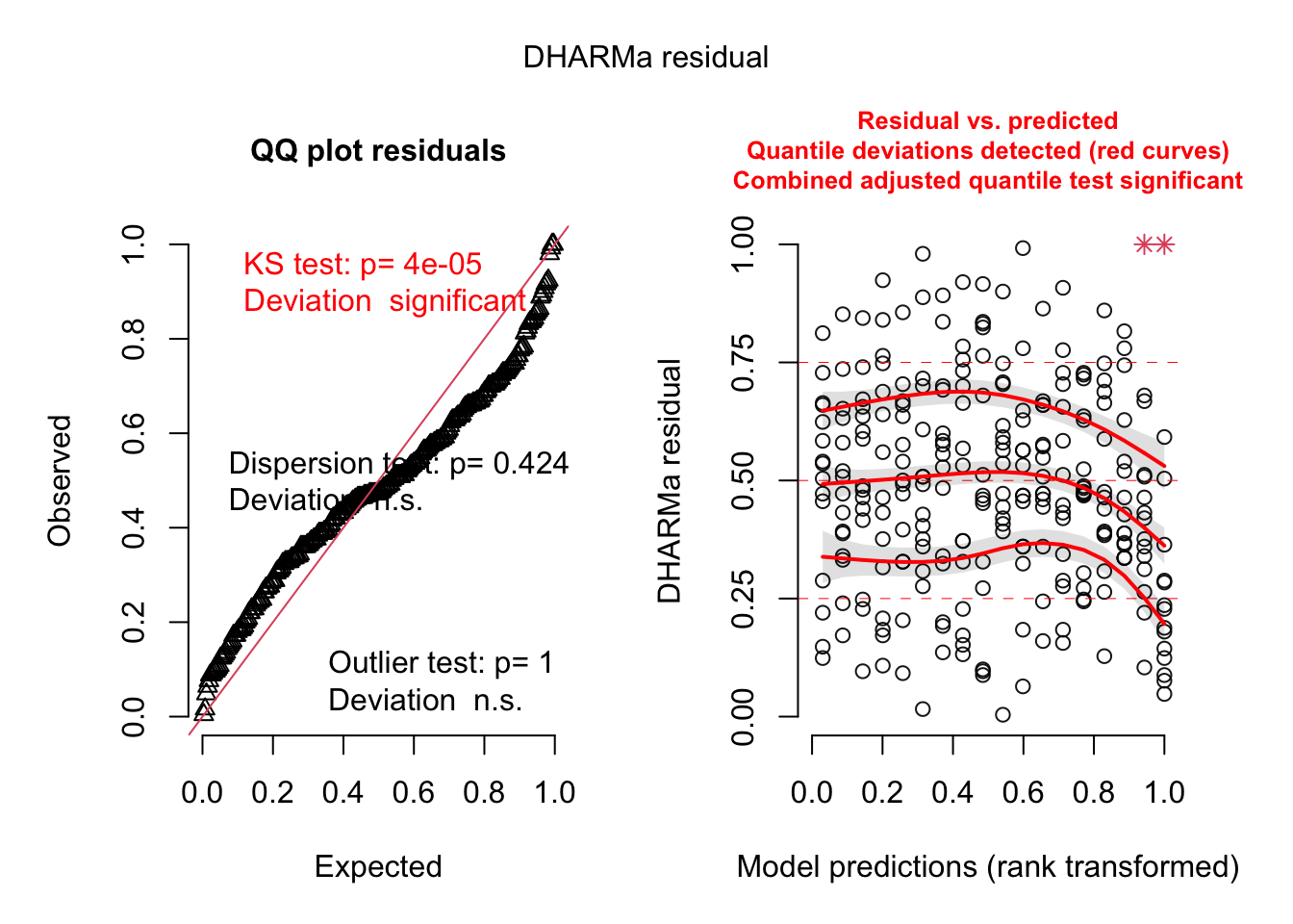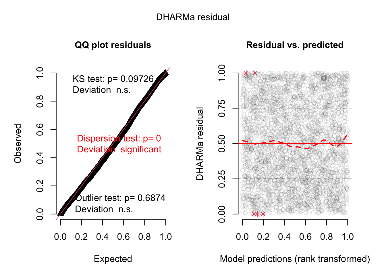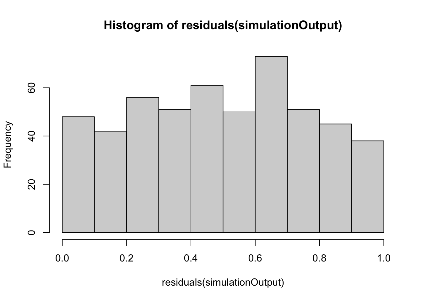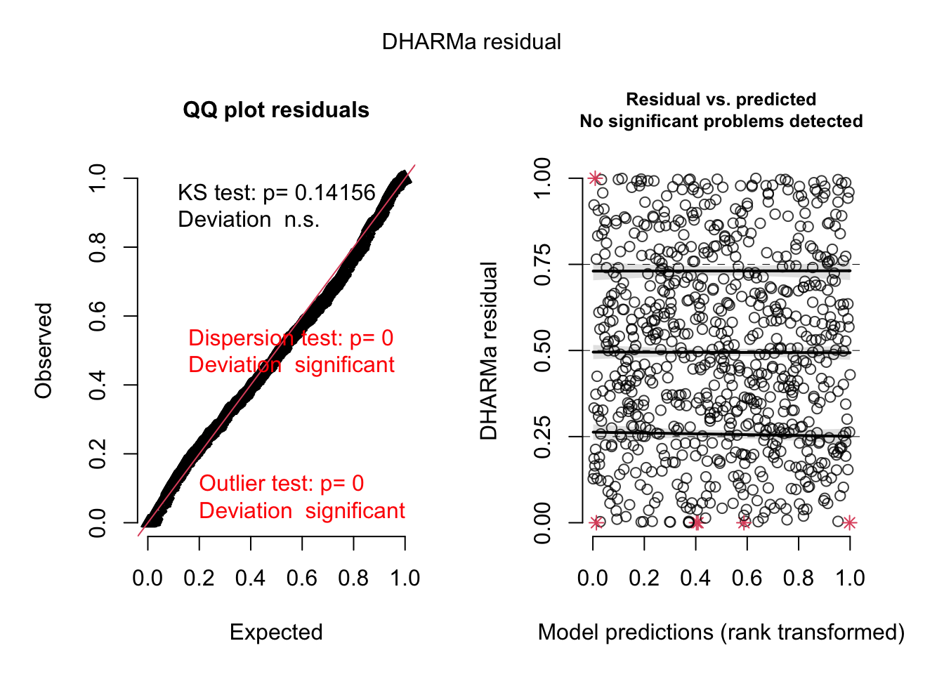 simulationOutput <- simulateResiduals(fittedModel = p2.mod1, plot = FALSE)