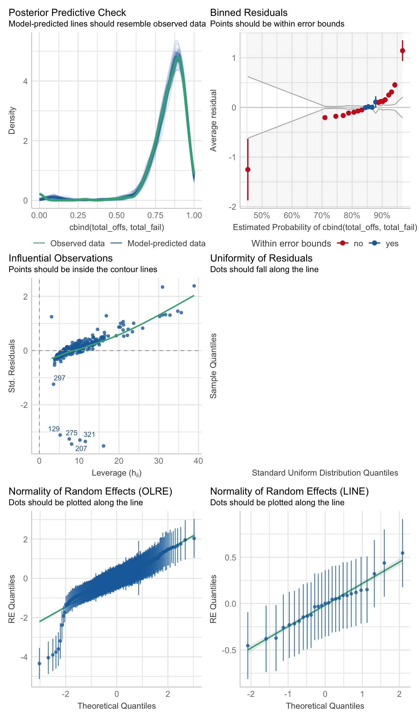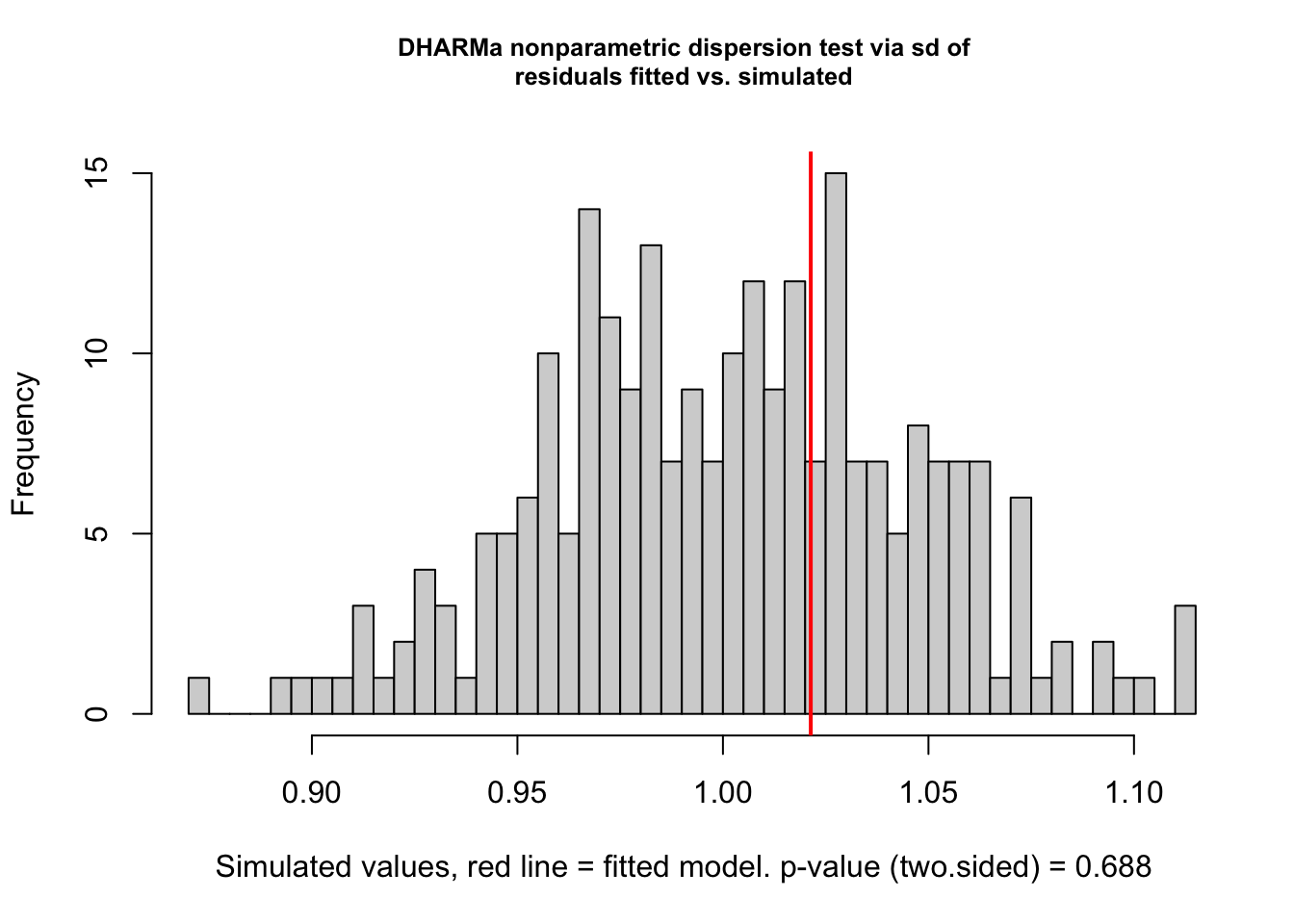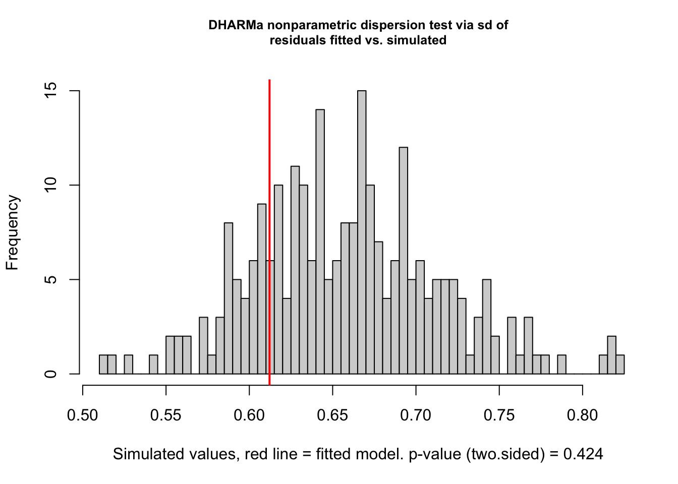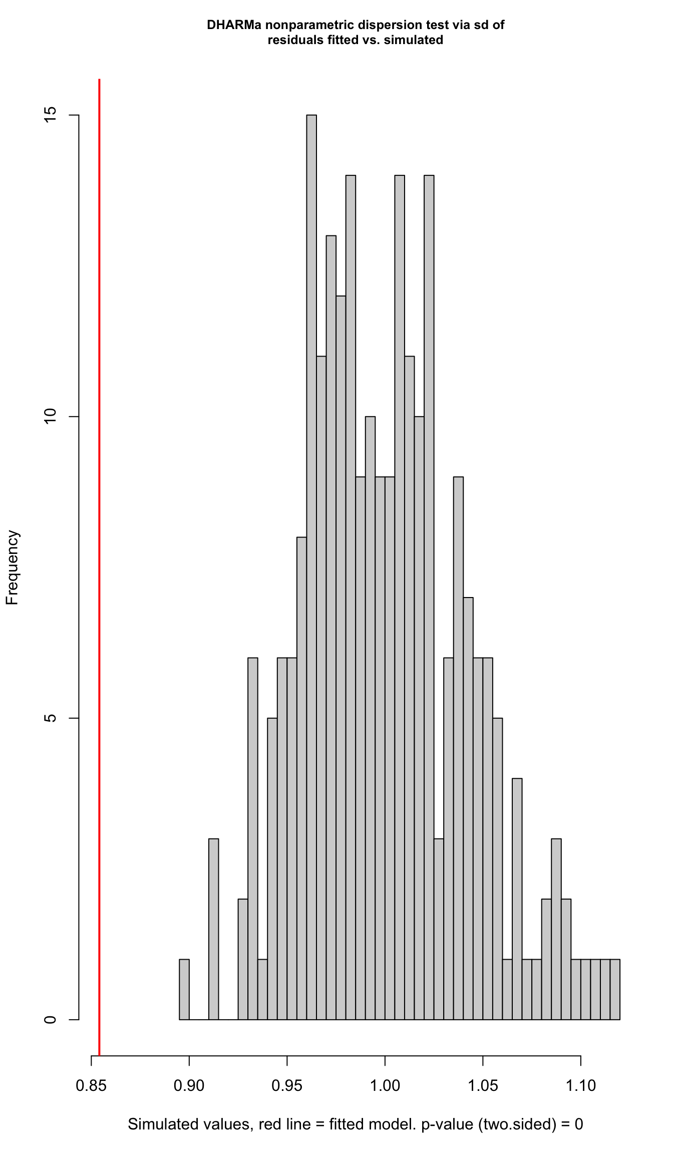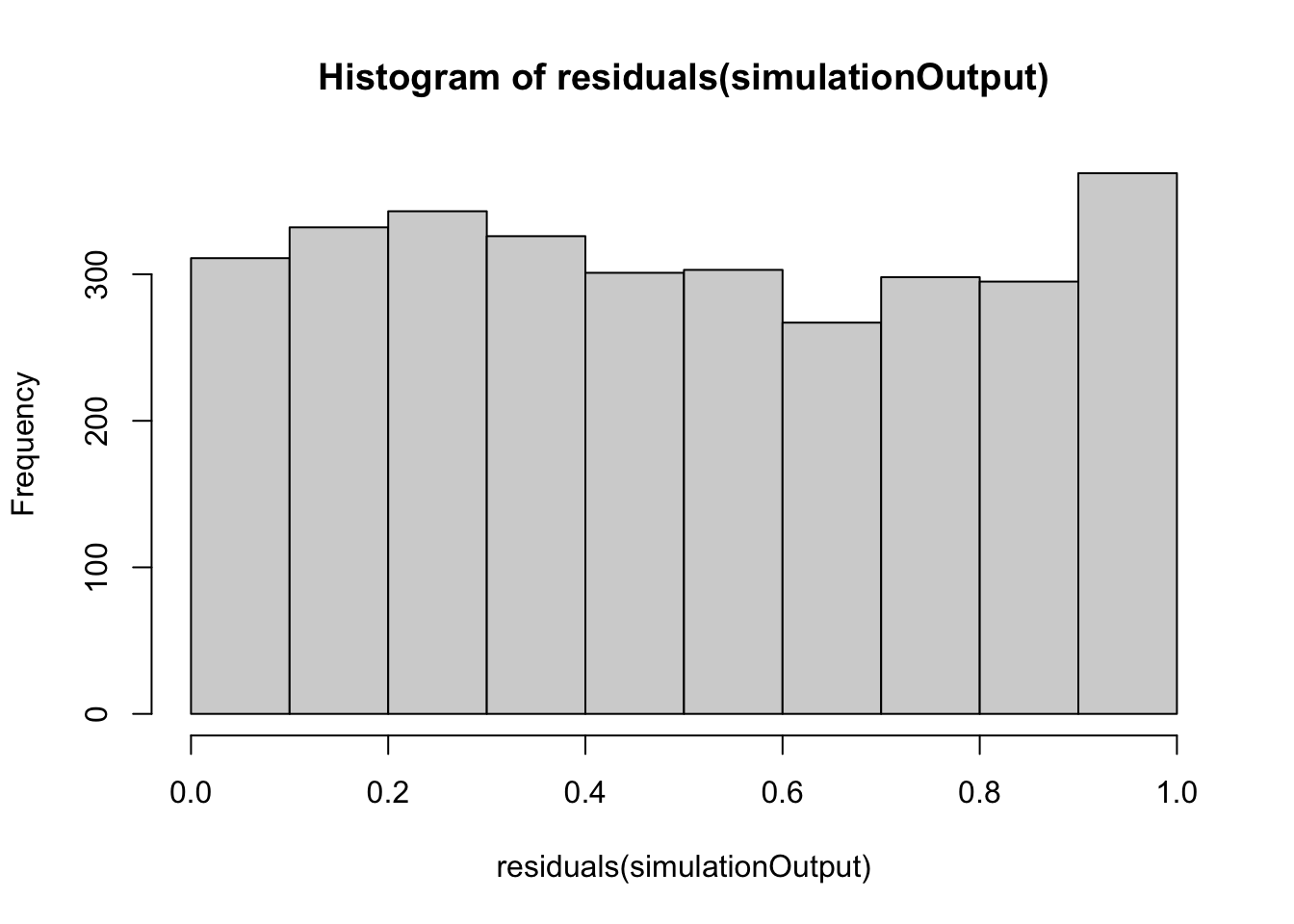simulationOutput <- simulateResiduals(fittedModel = p2.mod1, plot = FALSE)