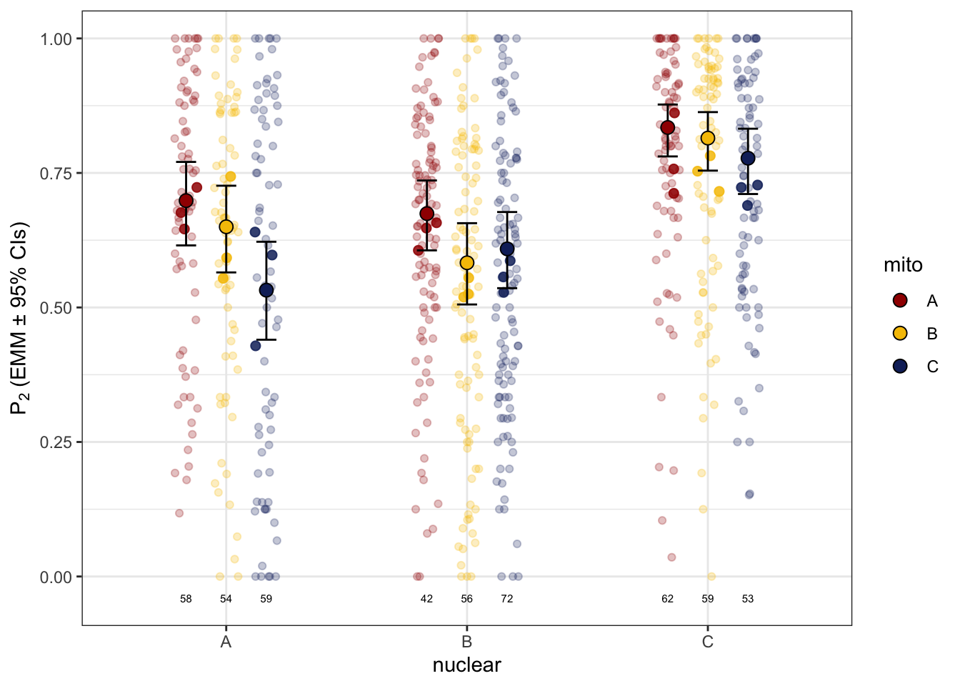 p2plot_raw <- emmeans(p2.mod1, ~ mito * nuclear, type = 'response') %>% as_tibble() %>%