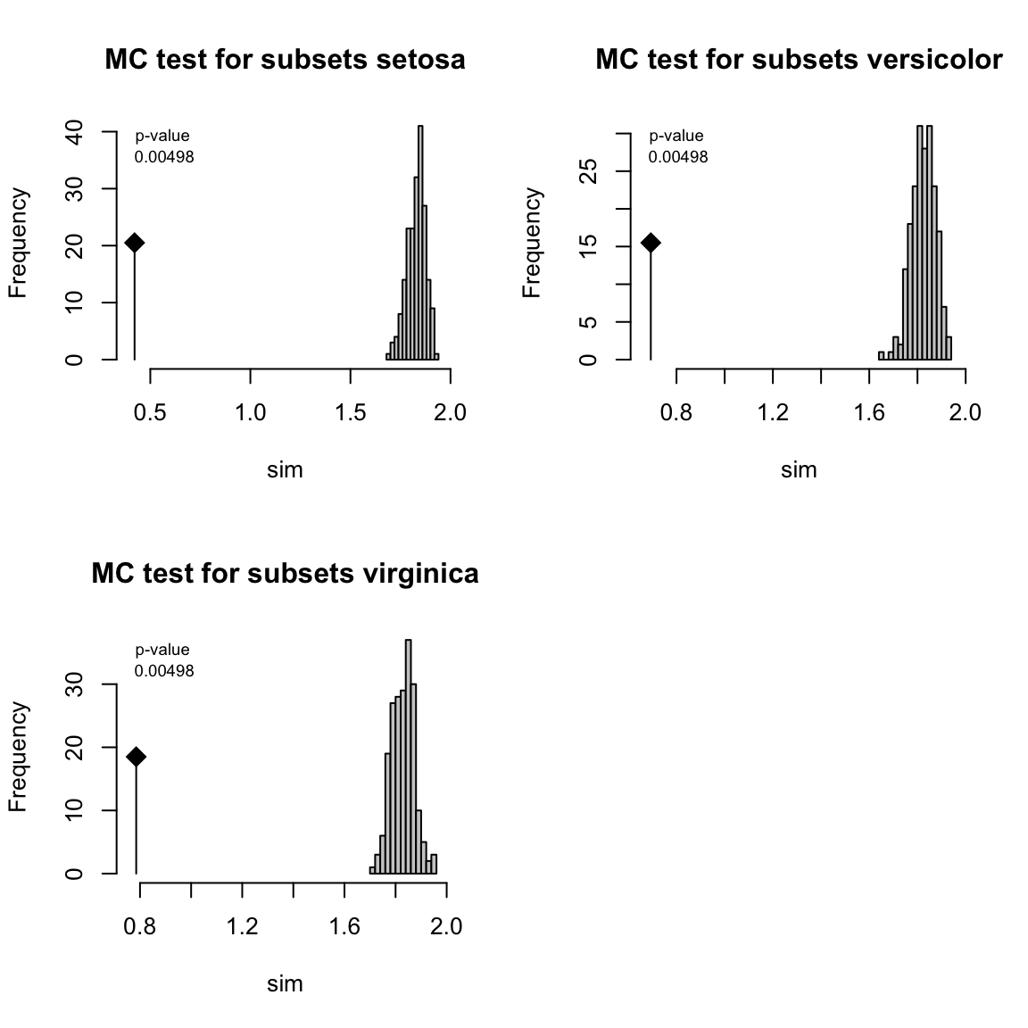 One other series of test can be done on the shape of the petal-space. Using a MCMC permutation test we can simulate a petal-space with specific properties and see if our observed petal-space matches these properties (similarly to Díaz et al. (2016)):