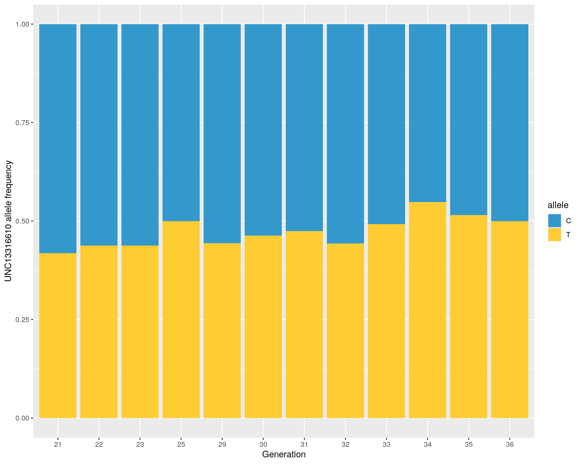 Genertation CC CT TT C_freq T_freq chisq p