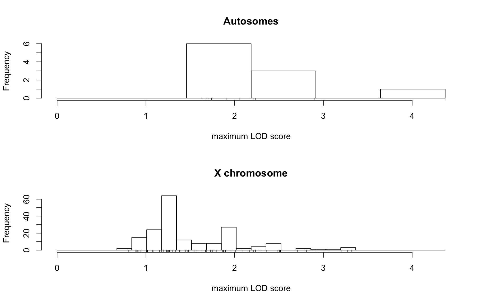 #operm.ehk <- qtl::scanone(cross.probs, method = "ehk", pheno.col="ICI.vs.PBS", n.perm = 1000, perm.Xsp = TRUE, model="binary", verbose=FALSE)