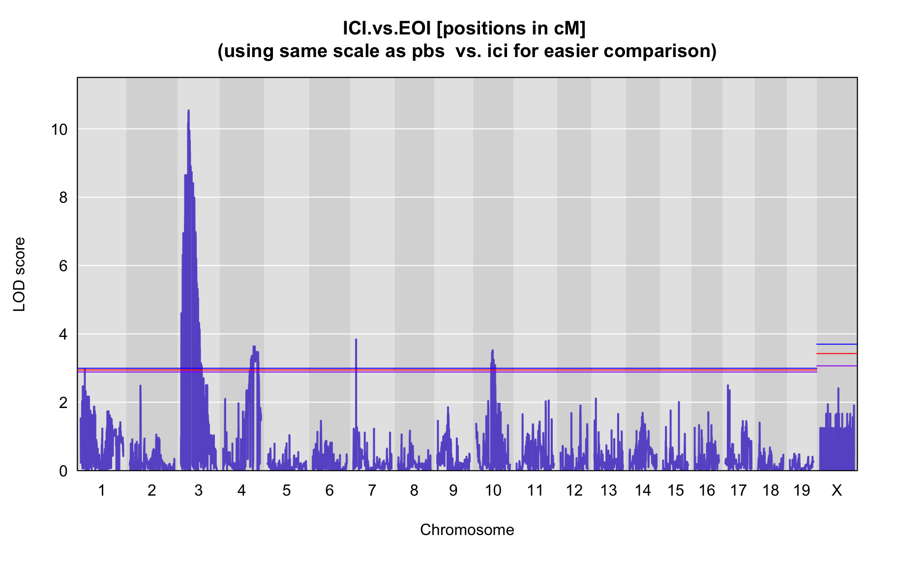 #operm.ehk <- qtl::scanone(cross.probs, method = "ehk", pheno.col="ICI.vs.EOI", n.perm = 1000, perm.Xsp = TRUE, model="binary", verbose=FALSE)