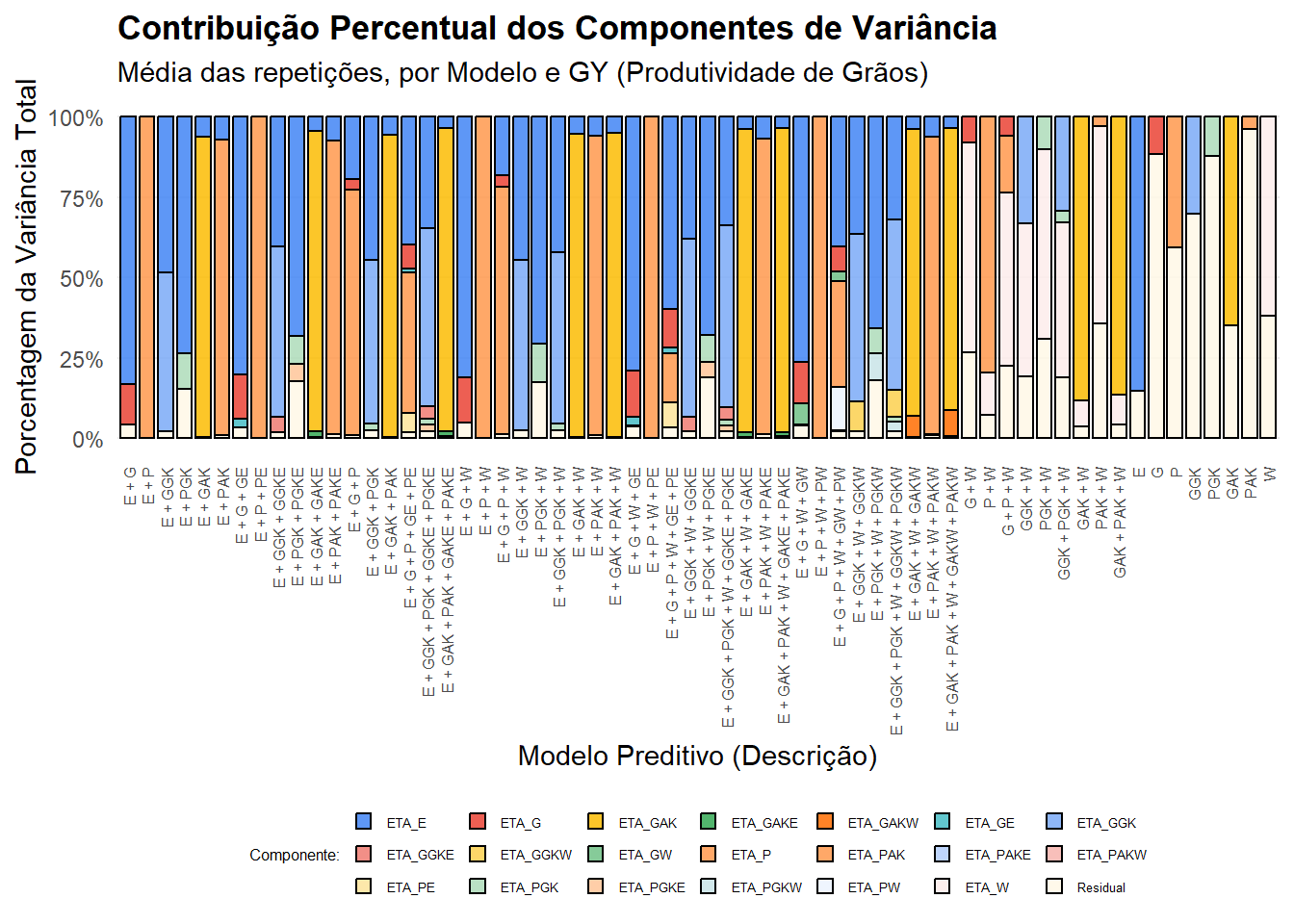 Isso nos dá uma visão clara da contribuição proporcional de cada componente de variância para cada modelo.