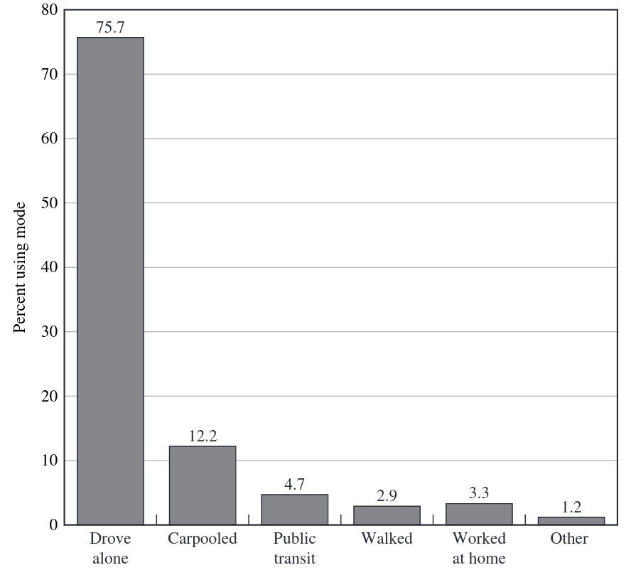 class: center, middle, inverse, title-slide # Econ 330: Urban Economics ## Lecture 13 ### Andrew Dickinson ### 10 August, 2021 --- class: inverse, center, middle # Lecture 14: Automobiles --- class: inverse, middle # Schedule .pull-left[ .ul[.bigger[.hi-gold[Today:]]] .hi-white[(i). US automobile use] .hi-white[(ii). Externalities] .hi-white[(iii). Congestion Pricing] ] -- .pull-right[ .ul[.bigger[.hi-gold[Upcoming:]]] - .hi-white[Reading:] (Chapter 8) - .hi-white[Book Report:] Due August 15 - .hi-white[PS02:] Due August 15 ] --- # Automobile use data --- # Auto use in the US .pull-left[  ] -- .pull-right[ .hi[Facts about American auto use:] - 88 percent of commuters use the car - Only 5 percent of commuters use public transit at the national level - Only 2 metro areas have public transit use above 10 percent - NYC - Chicago] --- # Vehicle Miles Traveled <iframe src="https://fred.stlouisfed.org/graph/graph-landing.php?g=FW1b&width=800&height=475" scrolling="no" frameborder="0" style="overflow:hidden; "target=_self"; width:800px; height:525px;" allowTransparency="true" loading="lazy"></iframe> --- # US: People like Cars <iframe src="https://ourworldindata.org/grapher/road-vehicles-per-1000-inhabitants-vs-gdp-per-capita" loading="lazy" style="width: 100%; height: 500px; "target=_self"; border: 0px none;"></iframe> --- # Carbon Emissions <iframe src="https://ourworldindata.org/grapher/road-vehicles-per-1000-inhabitants-vs-gdp-per-capita" loading="lazy" style="width: 100%; "target=_self"; height: 500px; border: 0px none;"></iframe> --- # Climate crisis A recent [UN scientific report](https://www.ipcc.ch/report/ar6/wg1/#SPM) leaves no doubt that humans are responsible for the current climate crisis -- Increased frequency of extreme weather including: .pull-left[ - Wildfires - Winter storms - Hurricanes] .pull-right[ - Heat waves - Floods - Droughts ] -- Other consequences include: .pull-left[ - Mass extinctions - Changes in ocean currents] .pull-right[ - Loss of habitat (reefs, rainforest, ice sheets) - Sea level rise ] --- # Climate crisis  --- # Carbon emissions <iframe src="https://ourworldindata.org/grapher/co-emissions-per-capita?tab=chart&country=USA~BRA~Europe+%28excl.+EU-27%29~IND~RUS~CHN~JPN" loading="lazy" style="width: 100%; "target=_self"; height: 500px; border: 0px none;"></iframe> --- # Carbon emissions <iframe src="https://ourworldindata.org/grapher/annual-co2-emissions-per-country?tab=chart&country=USA~CHN~EU-28~IND~RUS~JPN~BRA" loading="lazy" style="width: 100%; height: 500px; "target=_self"; border: 0px none;"></iframe> --- # Policy questions -- .center[.hi[Currently per capita CO2 emissions in develping countries skyrocket?]] -- .center[.hii[The future of global carbon emissions depends heavily on how car ownership rates evolve in China and other emerging economies]] -- <br> .center[.hi[How do we reduce CO2 per capita emissions?]] -- .center[.hii[What axiom can we apply to improve our understanding of usage?]] -- .center[.hi[Do drivers fully internalize the costs of CO2 emissions?]] --- class: inverse, middle # Externalities --- # Externalities .hi[Recall Axoim 3:] .hii[Externalities cause inefficiency] -- What are some externalities from driving? -- .pull-left[ - Congestion - Environmental Damage - Collisions] .pull-right[ - Blight (parking lots instead of parks) - Noise Pollution] -- .hi[How costly is congestion?] Typical commuter spends .hi[47 hours per year] in traffic - Very high in some metro areas (LA: 93, SF: 72, Atlanta: 67) - Estimated gasoline cost due to congestion delays: .hi[5 billion per year] - Time + Gas cost estimate: .hi[63 billion per year] --- # Externalities -- .smallerer[ .hi[.ul[Definition:] Marginal Social Cost] (MSC) > Added cost to _society_ from one extra unit of production/consumption .hi[Note:] `\(MSC \neq MC\)` ] -- .smallerer[.hi[.ul[Definition:] Marginal Private Cost] (MPC) > Added cost to _agent_ from one extra unit of production/consumption .hi[MSC is the marginal cost (private) plus the marginal external cost (social)] ] -- .smallerer[ .hi[.ul[Definition:] Marginal Social Benefit] (MSB) > Added benefit to _society_ from one extra unit of production ] -- .smallerer[ .hi[.ul[Definition:] Marginal Private Benefit] (MPB) 19 / 34 > Added benefit to _society_ from one extra unit of production ] --- # Externalities: Example Consider the market for .hi[gasoline] -- Using gasoline in cars causes air pollution and generates greenhouse gases -- Gasoline producers pays its input suppliers and workers but does not consider the external costs to society - MSC > MPC --- # Congestion externalities Let's start by assuming the only externality from driving is congestion .hi[Consider a commute within a metro area with the following characteristics:] - Distance ( `\(d\)` ): Let the commute distance be 10 miles `\(d = 10\)` - Monetary travel cost ( `\(m\)` ): Monetary costs are \$0.2 per mile `\(m = 0.2\)` - Time cost ( `\(c\)` ): Opportunity cost of time is \$0.1 per minute `\(c = 0.1\)` -- Thus the total cost of the trip is `\((m + c)\cdot 10\)` --- # Congestion externalities .center[  ] --- # Congestion externalities -- .center[  ] --- class: inverse, middle # Congestion pricing --- # Congestion pricing How do we fix .hi[Congestion?] -- .hii[Popular Answer:] Build more roads -- Building more roads `\(\Rightarrow\)` more space for cars `\(\Rightarrow\)` congestion will decrease -- .qa[Q]: What assumption must we make when stating .center["_building roads will reduce congestion_"] -- .qa[A]: The number of drivers will remain the same after the road is built -- .hi[Is this true?] --- # My nightmare: LA Traffic  --- # Congestion pricing: Cost incentives Obvious when we think about the incentives of drivers -- .hi[(i).] People avoid driving because it is costly - Time cost - Gas cost - Matinence cost -- .hi[(ii).] Building a new road makes it less costly - Time cost `\(\downarrow\)` -- .hi[(iii).] On the .hi[margin], people will start to drive when the new road