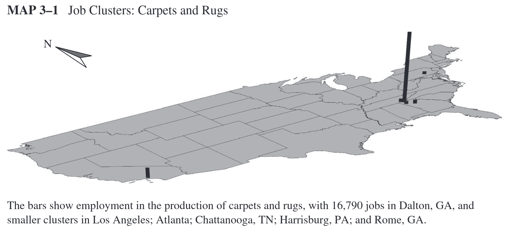 class: center, middle, inverse, title-slide # Econ 330: Urban Economics ## Lecture 04 ### Andrew Dickinson ### 22 July, 2021 --- class: inverse, center, middle # Lecture 04: City Size and Growth --- class: inverse name: schedule # Schedule .pull-left[ .ul[.bigger[.hi-white[Today:]]] .hi-white[(i). Clustering] .hi-white[(ii). City size] .hi-white[(iii). Introduction to growth] ] -- .pull-right[ .ul[.bigger[.hi-white[Upcoming:]]] - .hi-white[Reading] (Chapter 2 & 3) - .hi-white[Problem set 01 due on Friday, July 30th] ] --- # Last Time We discussed some .hi[fundamentals] that lead to the existence of cities -- .hi-blue[Main takeaway]: - Need some reason (.hi[economies of scale]) for cost of cities (high land prices, for example) to be justified -- .hi-blue[Questions]: - Why do cities grow beyond one factory? -- - Why are there differences in size across cities? - Where do cities emerge? --- class: inverse, middle, center # Firm clustering --- # Clustering So we explained .hi-blue[why] cities exist.. Can we explain why there might be more than one firm? -- Where to start? -- .center[.hi[Axiom 5: _Competition generates zero economic profit_]] -- Suppose a firm makes a positive economic profit. -- `\(\Rightarrow\)` additional firms enter the market -- `\(\Rightarrow \Pi \rightarrow 0\)` --- name: zero_profit # Clustering example How many firms are in the cluster? <img src="04-growth_files/figure-html/cluster_graph-1.svg" style="display: block; margin: auto;" /> --- # Clustering  --- name: cluster # Clustering  -- Which axiom do these data relate to? -- .hi[A2: Self-reinforcing effects generate extreme outcomes] --- name: cluster # Clustering Why might profit increase ( `\(\Pi \uparrow\)` ) initially as more firms .hi-orange[cluster]? -- .hi-blue[Firms may mutually benefit from clustering due to:] -- - .hi-orange[(i).] Sharing intermediate inputs - .hi-orange[(ii).] Labor matching - .hi-orange[(iii).] Knowledge spillovers - .hi-orange[(iv).] Labor pool sharing -- <br> .center[.hi-blue[Let's look at these in some more detail]] --- # (i). Sharing inputs Similar firms .hi-blue[share inputs] to benefit from economies of scale -- .hi-blue[Example:] High tech firms -- - Rapidly changing goods that require sophisticated intermediate inputs - Electronic components and testing facilities -- - Firms will share intermediate input suppliers to help reduce costs -- - Costs `\(\downarrow \quad \Rightarrow \quad \Pi \uparrow\)` -- <br> .hi-blue[Exists a optimal cluster size that maximizes the benefits of sharing inputs] --- # (ii). Labor matching Extending the tech example, consider a labor pool of software programmers -- The skill sets of these programmers vary greatly - Coding languages: C, Javascript, Python, Rust, etc. - Programming tasks: graphics, AI/ML, OS development etc. -- Clustering .hi[attracts] more of the kind of workers they want -- - Firms and workers are .blue[not always perfectly matched] - Mitchmatches .hii[require training] to eliminate skill gap. .hi[Training is costly] -- Better for firm if they can find a worker to fill role immediately - More likely in a cluster --- # (ii). Labor matching: HS model .hi[Model assumptions:] .smallererer[.hi[(i). Variation in worker skills:] Workers have a unique skill set described by an "address" on a circle] -- .smallererer[.hi[(ii). Firm entry:] Firms enter the market and pick a good with an associated skill requirement] -- .smallererer[.hi[(iii). Training costs:] Workers incur the cost associated with closing the gap on the circle between their own skill and the skill requirement to produce the good] -- .smallererer[.hi[(iv). Competition for workers:] Each firm offers a wage to anyone who meets the skill requirement; workers accept the highest net wage - Net wage `\(=\)` gross wage - training costs] -- .smallererer[Additionally, assume] - .smallererer[.hi[A4: Production is subject to economies of scale] to ensure firms hire more than one worker] - .smallererer[.hi[A5: Competition generates zero economic profit]] to ensure perfect competition --- # (ii). Labor matching: HS model .hi[Consider two cities:] Wages `\(w = 12\)` and training costs `\(t_c = 24\)` .pull-left[ - City A - Two firms - Four workers (four skill types) - City B - Three firms - Six workers (six skill types)] -- .pull-right[   ] --- # (iii). Knowledge spillovers .hi-blue[Knowledge spillovers:] Exchange of ideas across individuals within a space -- - One of most important external benefit of a college campus (classroom) is the .hii[peer effects] -- .hi-blue[Examples:] .pull-left[ - Graduate school - Jam sessions ] .pull-right[ - Attending seminars, workshops, and conferences ] -- Knowledge spillovers increase with more people and more knowledge -- `\(\Rightarrow\)` Knowledge Spillovers `\(\uparrow\)` `\(\longrightarrow\)` Productivity `\(\uparrow\)` -- .hi-blue[Urban settings:] Silicon Valley, Wall Street, etc. --- # Agglomeration economies .ul[.hi-blue[Definition]]: .hi[Agglomeration Economies] - Benefits that come when firms and people locate near one another together in cities and industrial clusters -- > Agglomeration economies are the benefits that come when firms and people locate near one another together in cities and industrial clusters. These benefits all ultimately come from transport costs savings: the only real difference between a nearby firm and one across the continent is that it is easier to connect with a neighbor. Of course, transportation costs must be interpreted broadly, and they include the difficulties in exchanging goods, people, and ideas Source: [Ed. Glaeser](https://www.nber.org/chapters/c7977.pdf) --- name: urban # Agglomeration economies Let's refine our language with definitions: -- i. _.hi[Localization economies]_ - The economic forces that cause clustering that act on firms .hii[within the same] industry - Local to a particular industry - Example: Firms in the software industry cluster in Silicon Valley ii. _.hi.orange[Urbanization economies]_ - The e