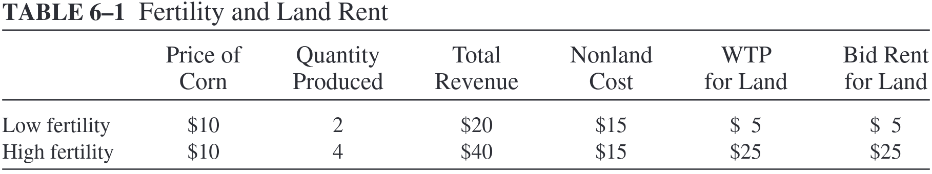 class: center, middle, inverse, title-slide # Econ 330: Urban Economics ## Lecture 05 ### Andrew Dickinson ### 26 July, 2021 --- class: inverse, center, middle # Lecture 05: Rents --- class: inverse name: schedule # Schedule .pull-left[ .ul[.bigger[.hi-white[Today:]]] .hi-white[(i). Intro to rents] .hi-white[(ii). City "shape"] ] -- .pull-right[ .ul[.bigger[.hi-white[Upcoming:]]] - .hi-white[Reading] (Chapter 4) - .hi-white[Problem set 01 due on TBD*] ] --- # Introduction: City shape .hi[First Week:] philosophicalish questions -- .pull-left[ - What is a city? - Why do cities exist? ] .pull-right[ - What determines city size? - How do cities grow? ] -- .hi[Moving forward]: -- - What economic forces determine .hi-pink[city shape]? -- - Why does the price of land change? - Why are buildings taller in city centers? <br> -- .hi[Questions?] --- # Introduction: City shape .hi[Why do people and firms choose a particular location?] -- .hi[What influences these choices?] -- .hi[Can we explain the current _and_ historical "shape" of cities?] <br> -- - .hi[Today:] How do these choices impact rental prices .pink[within] cities -- - .hi[Later:] How do these choices impact rental prices .purple[across] cities - Basic introduction into [discrete choice theory](https://en.wikipedia.org/wiki/Discrete_choice)* -- --- # Introduction to rents: NYC <img src="05-rents_files/figure-html/rent0_plot-1.png" style="display: block; margin: auto;" /> --- # Introduction to rents: NYC  source: [Oppurtunity Atlas](https://www.opportunityatlas.org/) --- # Introduction to rents: US <img src="05-rents_files/figure-html/rent1_plot-1.png" style="display: block; margin: auto;" /> --- # Introduction to rents: OR, WA <img src="05-rents_files/figure-html/rent2_plot-1.png" style="display: block; margin: auto;" /> --- # Introduction to rents: OR, WA <img src="05-rents_files/figure-html/rent2b_plot-1.png" style="display: block; margin: auto;" /> --- <img src="05-rents_files/figure-html/rent-pop-plot-1.png" style="display: block; margin: auto;" /> --- # Leaflet --- name: bid-rent class: inverse, middle, center # Bid-Rent Curves --- # The Bid-Rent Curve A .hi[Bid - Rent Curve:] The relationship between rental prices and the distance of land from the city center <sup>.pink[†]</sup> .footnote[ .pink[†] It actually does not have to be the city center -- can be a point of attraction. In this class we will always use the city center though. ] .hi[These curves vary across sectors:] -- - .hi-orange[Housing:] Accessibility to employment (low commuting costs) -- - .hi-orange[Industrial Space:] Accessibility to consumers and suppliers -- - .hi-orange[Tech/Office Space:] Accessibility to information -- <br> .hi[But first a super simple agricultural land rent model] --- # Agricultural land rent model .ul[.hi[Definitions:]] - .hi[Land rent:] Periodic payment by a land consumer to a landowner - .hi[Market value:] The amount paid to become the landowner -- .ul[.hi[Setup:]] Rent on a plot of land is determined by how productive the plot is -- - .hi[Agriculture:] Price of plot is determined by fertility -- .hii[Consider a setting] where farmers grow corn on two types of land .pull-left[ - High fertility (HF): Produces 4 units of corn] .pull-right[ - Low fertility (LF): Produces 2 unites of corn] --- # Agricultural land rent model .hi[Assumptions:] <nobr> .pull-left[ - .hi[(i).] Farmers rent from landowners - .hi[(ii).] No barriers to the corn market - .hi[(iii).] Perfect competition ] .pull-right[ `\(TC = 15\)` (excluding rent) `\(P_{corn} = 10\)` ] -- .center[.hi[How much will farmers bid for land?]] -- .pull-left[ .hi-pink[Revenue:] `\(TR = P_{corn} \cdot Q_{corn}\)` - HF: `\(TR_{HF} = 10 \cdot 4 = 40\)` - LF: `\(TR_{LF} = 10 \cdot 2 = 20\)` ] -- .pull-right[ .hi-pink[Profit:] `\(\Pi = TR - TC\)` - `\(\Pi_{HF} = TR_{HF} - TC = 40 - 15 - r\)` - `\(\Pi_{LF} = TR_{LF} - TC = 20 - 15 - r\)` ] -- .center[.hi[Recall] .hi-pink[A05: Competition drives economic profit to zero]] --- # Agricultural land rent model -- The following table computes maximum WTP for rent:  Since there are no barriers to entry, more firms will enter - `\(\Pi \rightarrow 0\)` -- - `\(\Pi_{HF} = TR_{HF} - TC = 40 - 15 - r = 0 \Rightarrow r = 15\)` - `\(\Pi_{LF} = TR_{LF} - TC = 20 - 15 - r = \Rightarrow r = 5\)` --- # (i) Housing prices model Extend the bid-rent model to the housing sector within a city -- In cities WTP for land depends on .hi[accessibility] rather than productivity -- .hi[Assumptions:] .hi[(i).] Commuting costs are the .hi[only] location factor in decision making -- .hi[(ii).] Only one member of household commutes to employment area -- .hi[(iii).] They only consider the monetary cost of commuting (no time cost) -- .hi[(iv).] Noncommuting travel is insignificant -- .hi[(v)] Public services, taxes, amenities are the same everywhere -- .center[.hi[Assumptions ensure the employment area is the focal point of the city]] --- # (i) Housing prices model: Indifference .hi[A1:] _Housing prices adjust until there is locational indifference_ - Locational Eq - IE: A marginal increase in rent just offsets the lower commuting costs -- .hi[We call this the locational equilibrium condition]. In math: `\begin{align*} \Delta P \cdot h + \Delta x \cdot t = 0 \end{align*}` .pull-left[ - `\(P\)`: .hi[Price] of housing (per `\(ft^2\)`) - `\(h\)`: .hi[Housing quantity] ( `\(ft^2\)` ) ] .pull-right[ - `\(x\)`: .hi[Distance] of commute (miles) - `\(t\)`: .hi[Commuting costs] (per mile) ] --- # (i) Housing prices model: Bid-Rent With locational indifference, we can derive the .hii[slope] of the .hi[bid-rent] curve: `\begin{align*} \underbrace{\Delta P \cdot h}_{\text{Marginal change in housing cost}} + \underbrace{\Delta x \cdot t}_{\text{Marginal change in commuting cost}} &= 0 \end{align*}` --- # (i) Housing prices model: Bid-Rent With locational indifference, we can derive the .hii[slope] of the .hi[bid-rent] curve: `\begin{align*} \Delta P \cdot h + \Delta x \cdot t &= 0\\ \Delta P \c