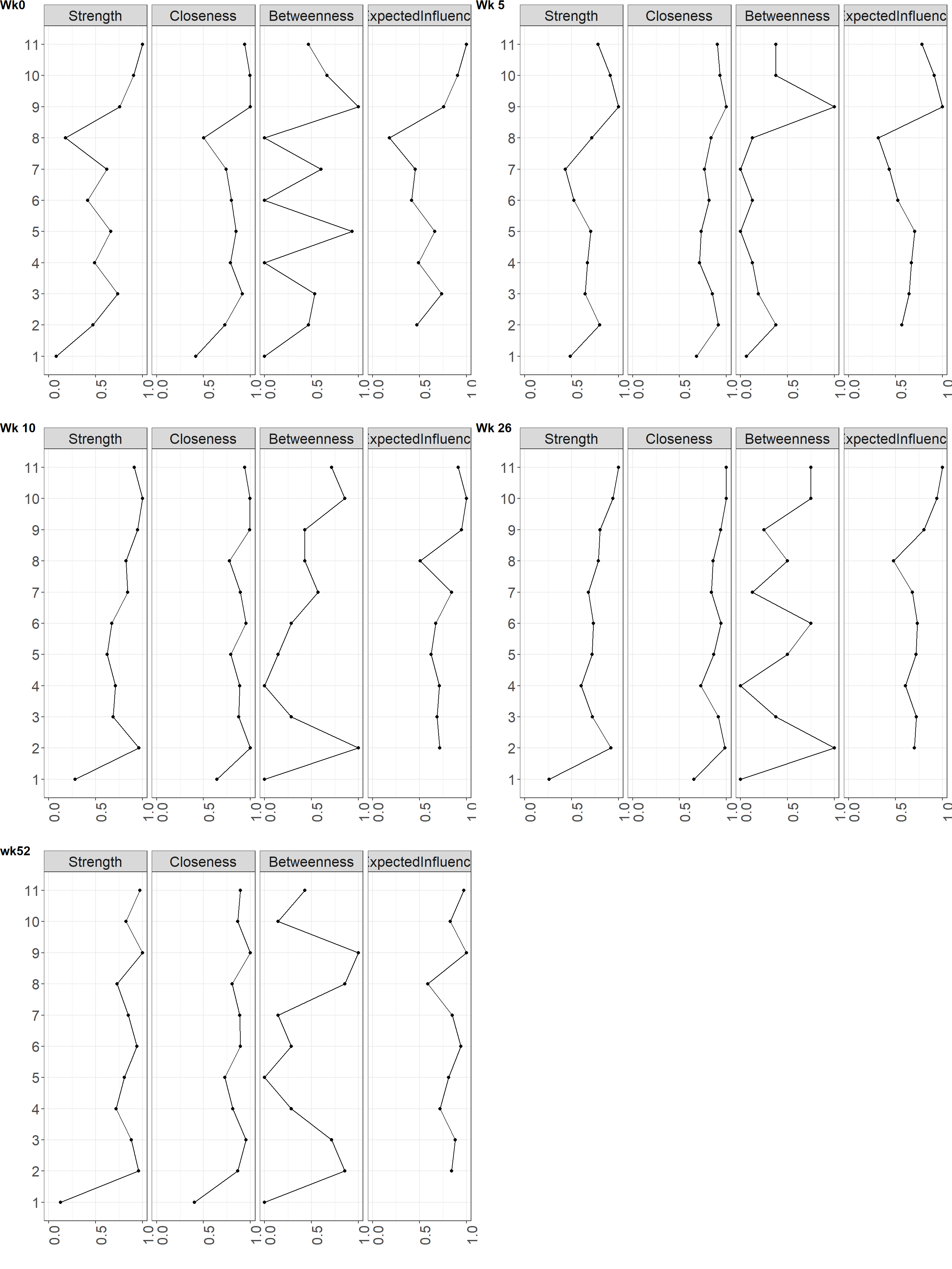 Note: relative centrality indices are shown on x-axis rather than raw centrality indices.