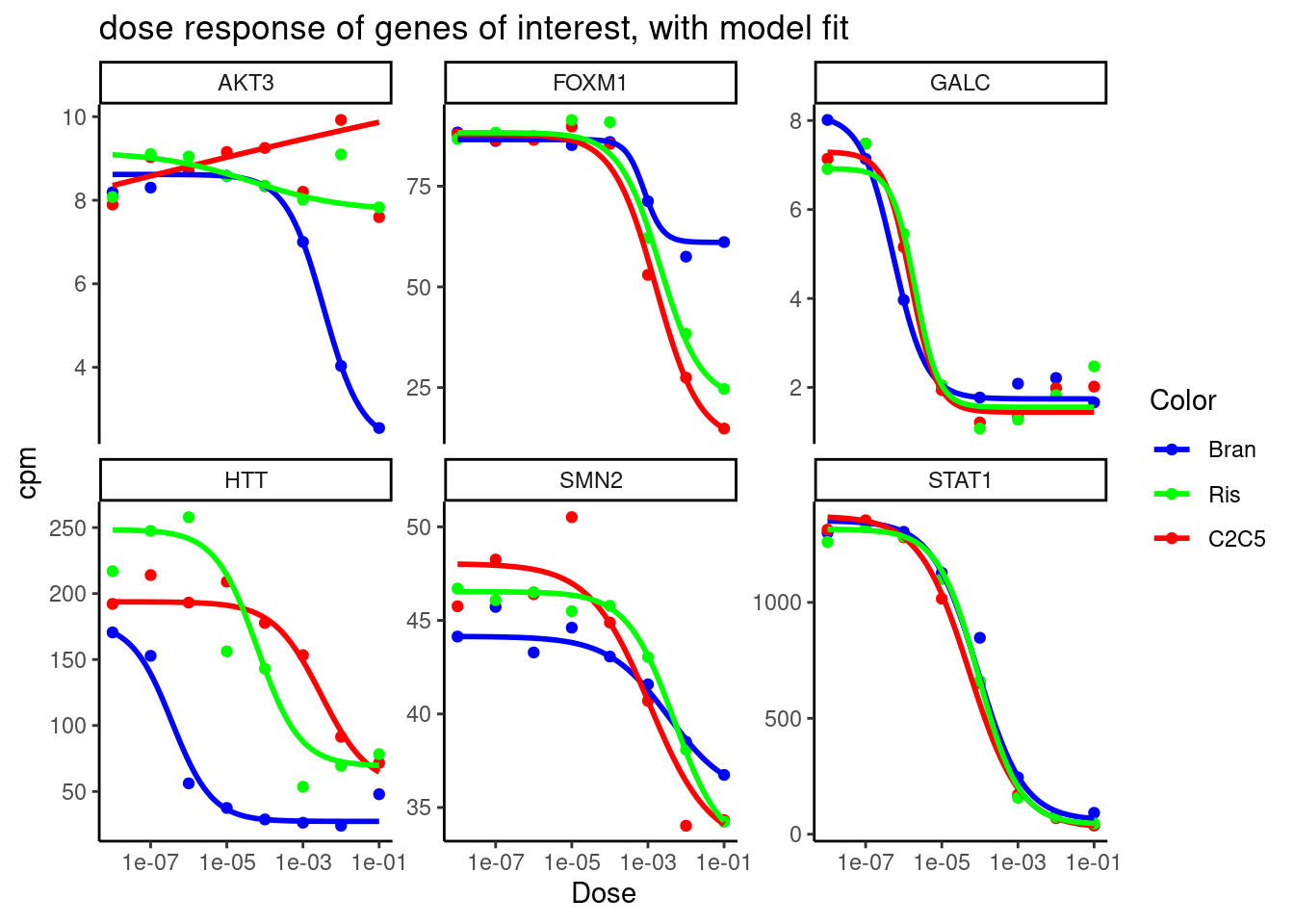 Ok, so for some genes with more questionable dose-response curves (eg AKT3), it certainly makes a difference in the visual shape of the curve, and the parameter estimates might be wildly different.