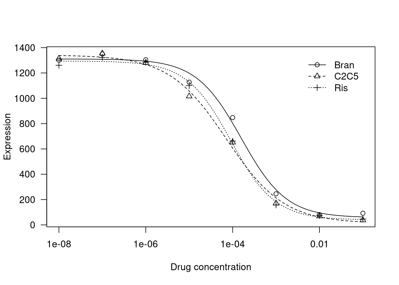 I also notice there there type parameter can specify different data types, so for example for low-count data (eg splicing) we can try specifying type="Poisson". I will have to read the documentation to make sure I understand how this works. And even if it is as simple as I think to specify type="Poisson", I would then we have to think about offsets for parameters based on library size or total read counts in clusters. That might be more trouble than it is worth trying to implement. There is also an option to specify limits for parameters, or keep certain parameters fixed. For example, I could fix the LowerLimit parameter to be the mean expression among DMSO replicates.