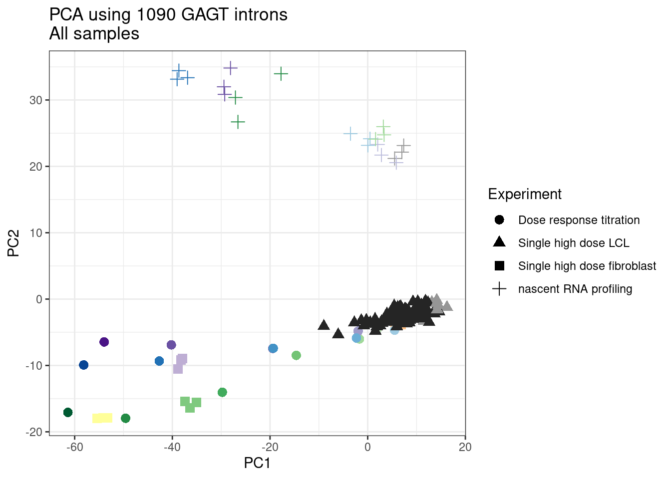 labs(title = "PCA using 475 GAGT introns\nAll samples", caption="Introns based on being significant in any contrast")