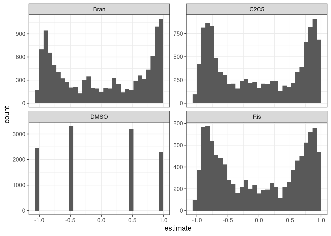 I also notice there there type parameter can specify different data types, so for example for low-count data (eg splicing) we can try specifying type="Poisson". I will have to read the documentation to make sure I understand how this works. And even if it is as simple as I think to specify type="Poisson", I would then we have to think about offsets for parameters based on library size or total read counts in clusters. That might be more trouble than it is worth trying to implement. There is also an option to specify limits for parameters, or keep certain parameters fixed. For example, I could fix the LowerLimit parameter to be the mean expression among DMSO replicates.